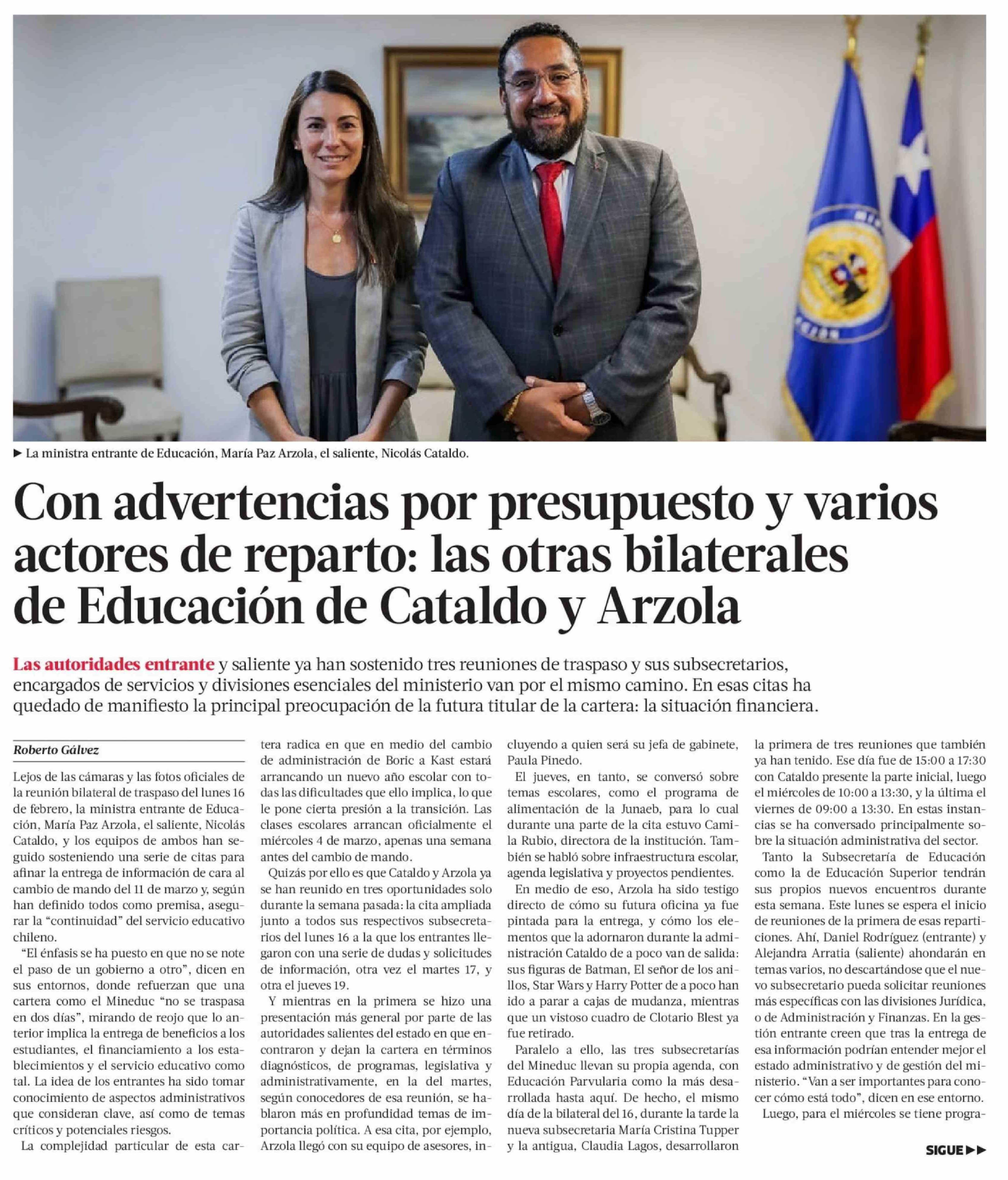 Con advertencias por presupuesto y varios actores de reparto: las otras bilaterales de Educación de Cataldo y Arzola
