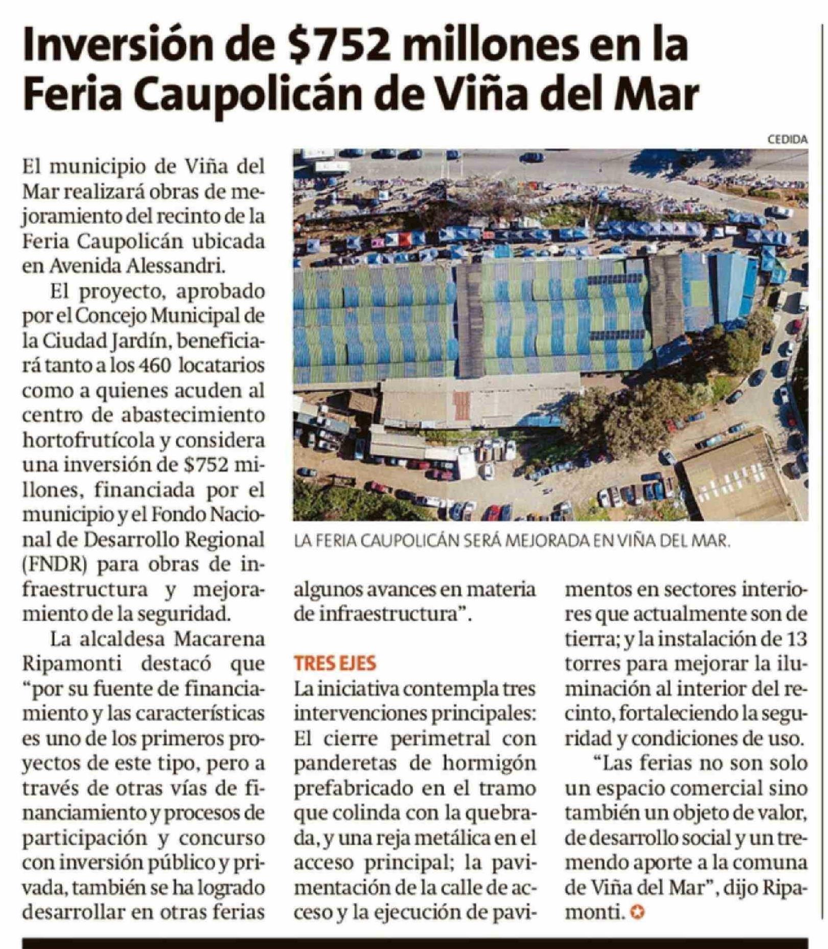 Inversión de $752 millones en la Feria Caupolicán de Viña del Mar