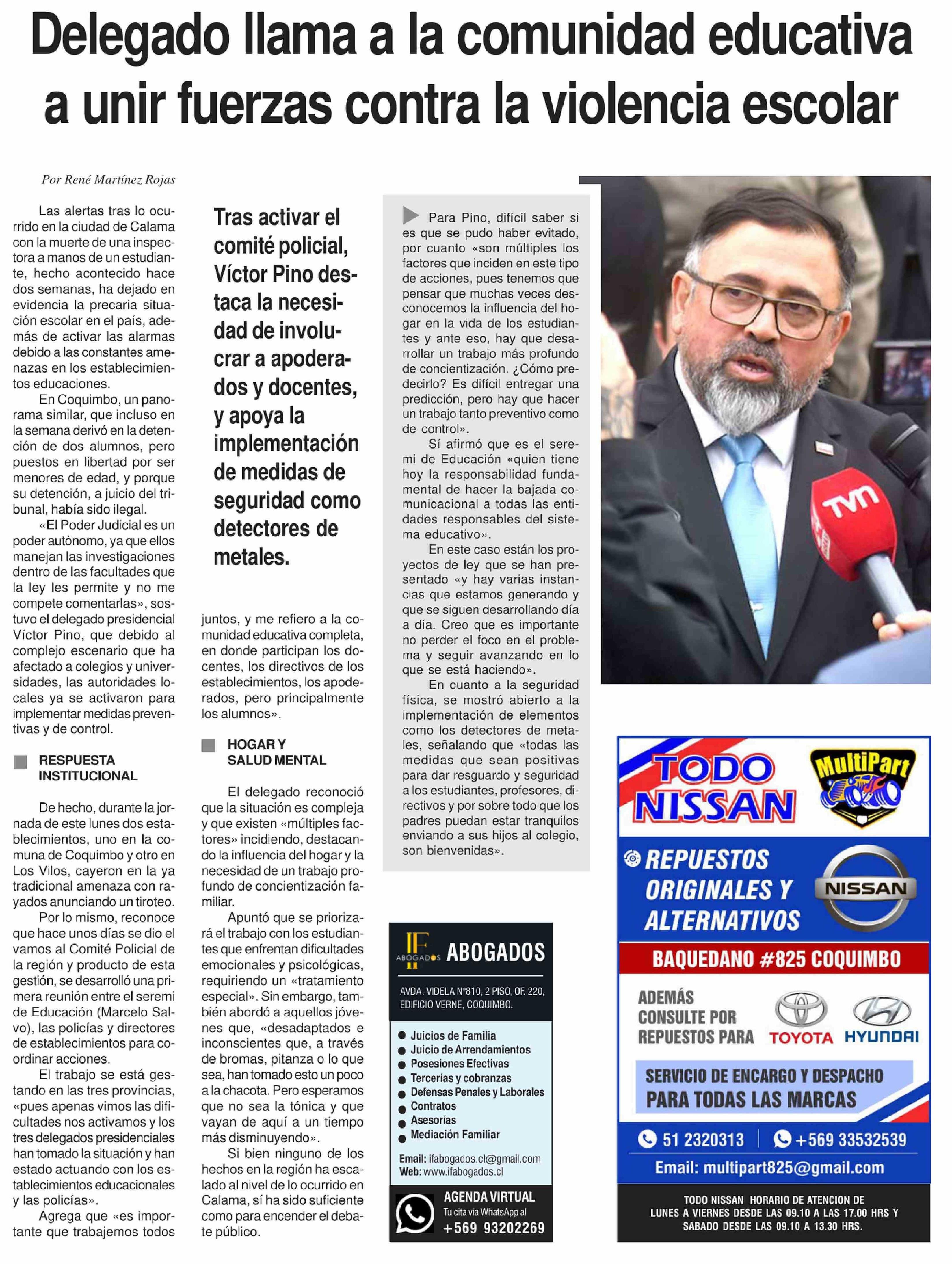 Título: Delegado llama a la comunidad educativa a unir fuerzas contra la violencia escolar
