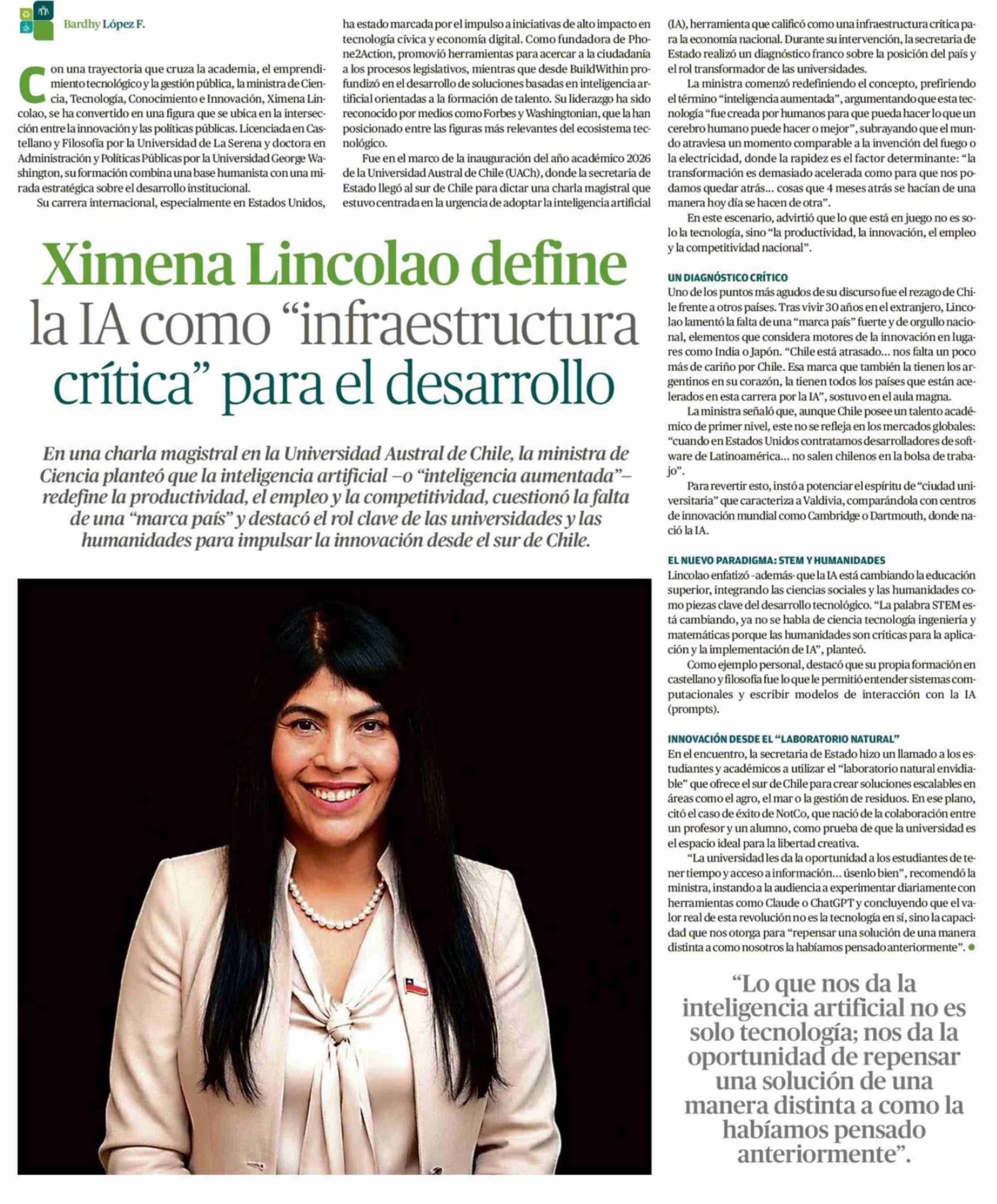 Título: Ximena Lincolao define la IA como "infraestructura crítica" para el desarrollo