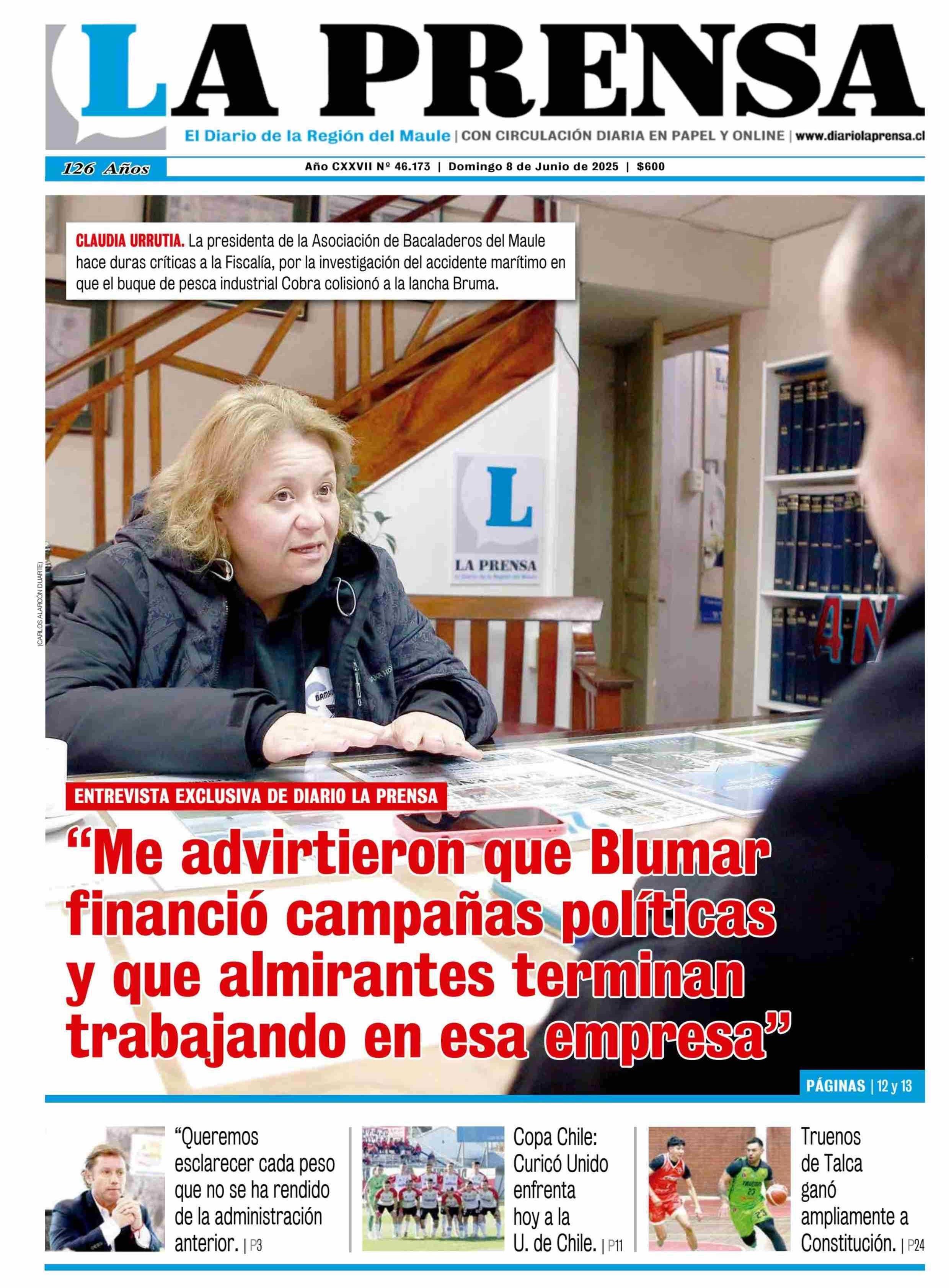 PORTADA LA PRENSA DE CURICÓ CHILE