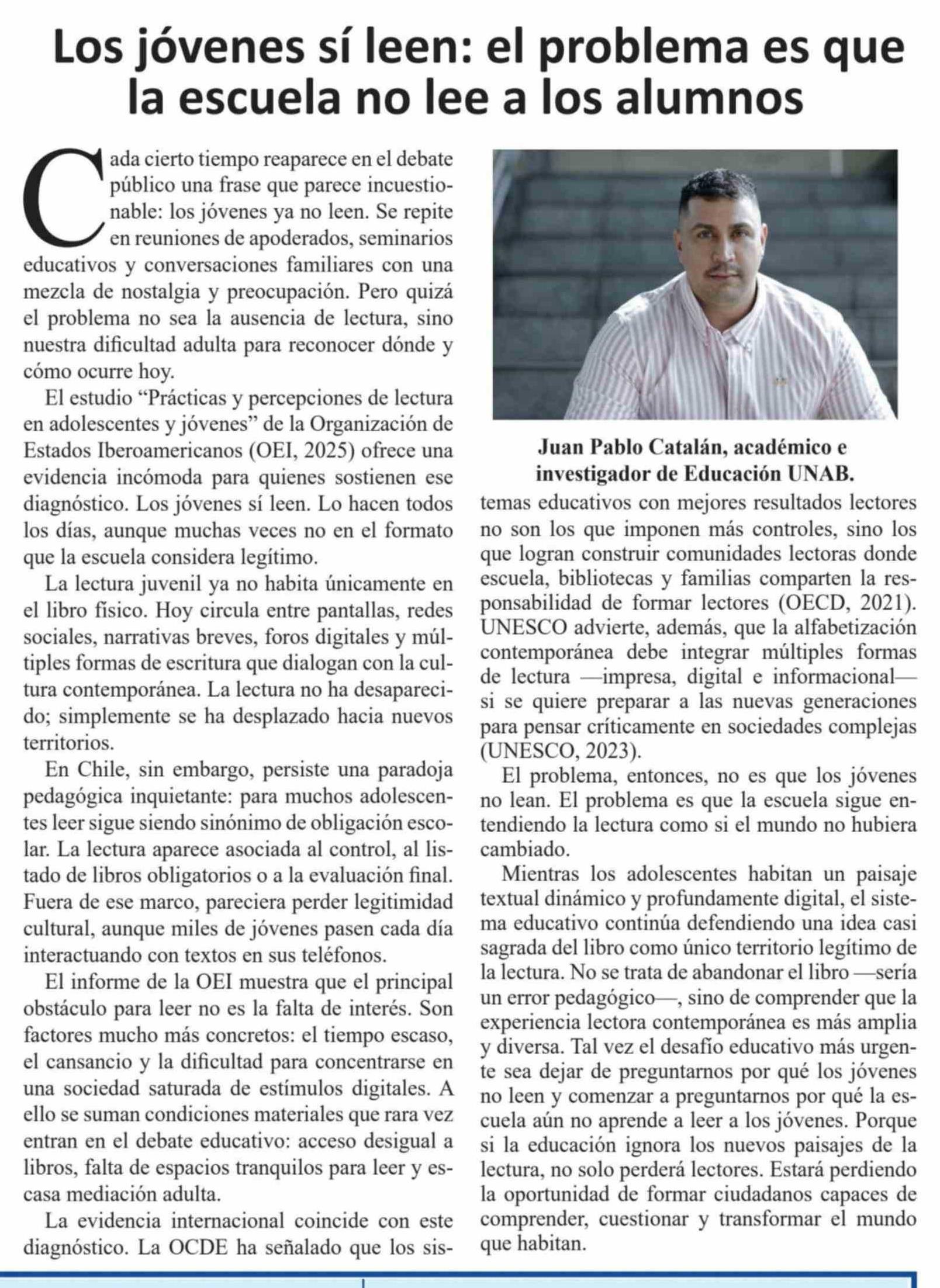 Columnas de Opinión: Los jóvenes sí leen: el problema es que la escuela no lee a los alumnos