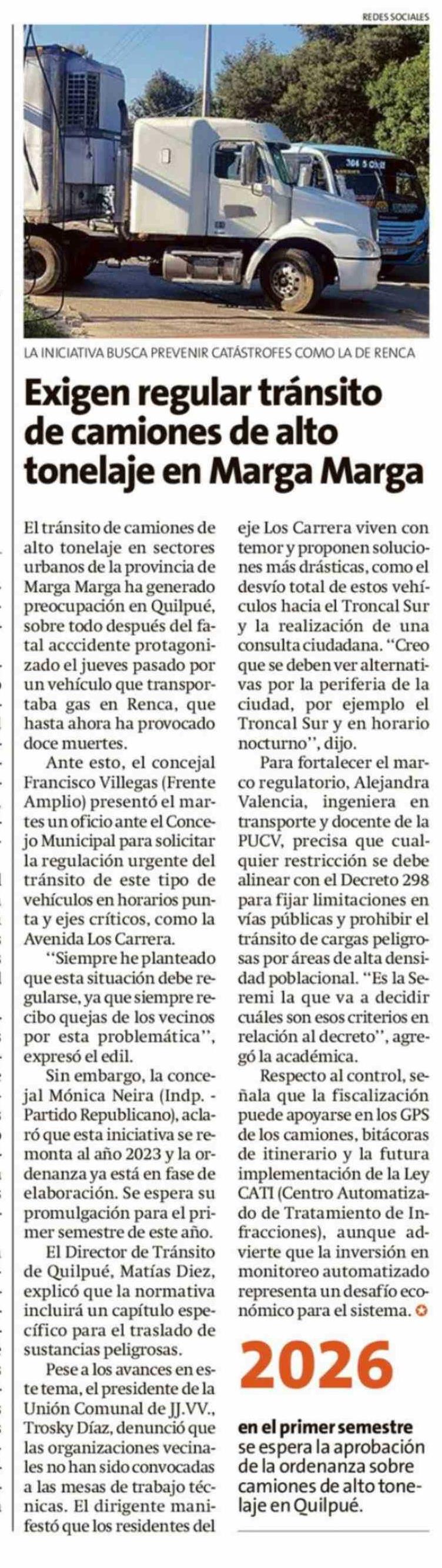 Exigen regular tránsito de camiones de alto tonelaje en Marga Marga