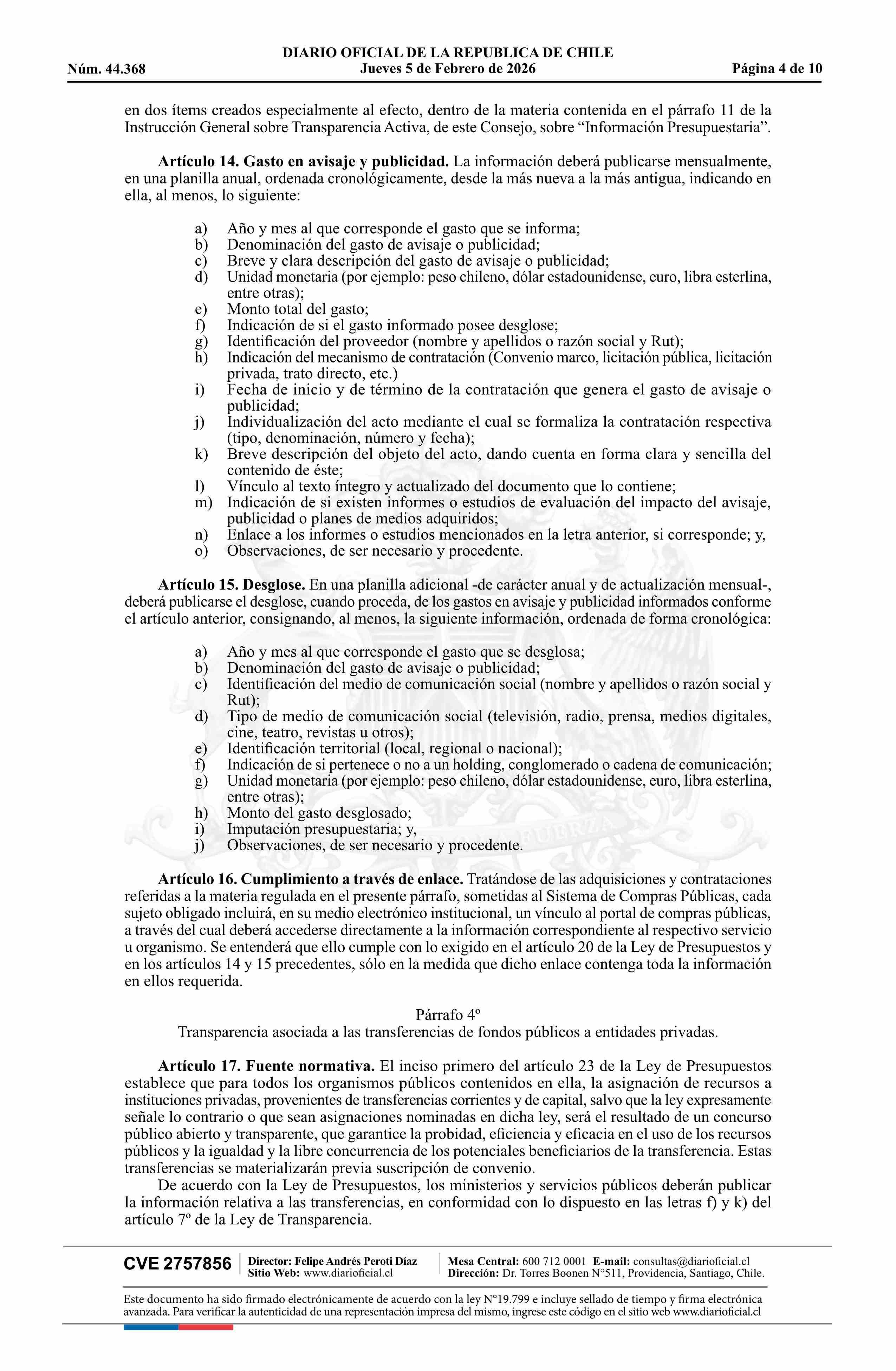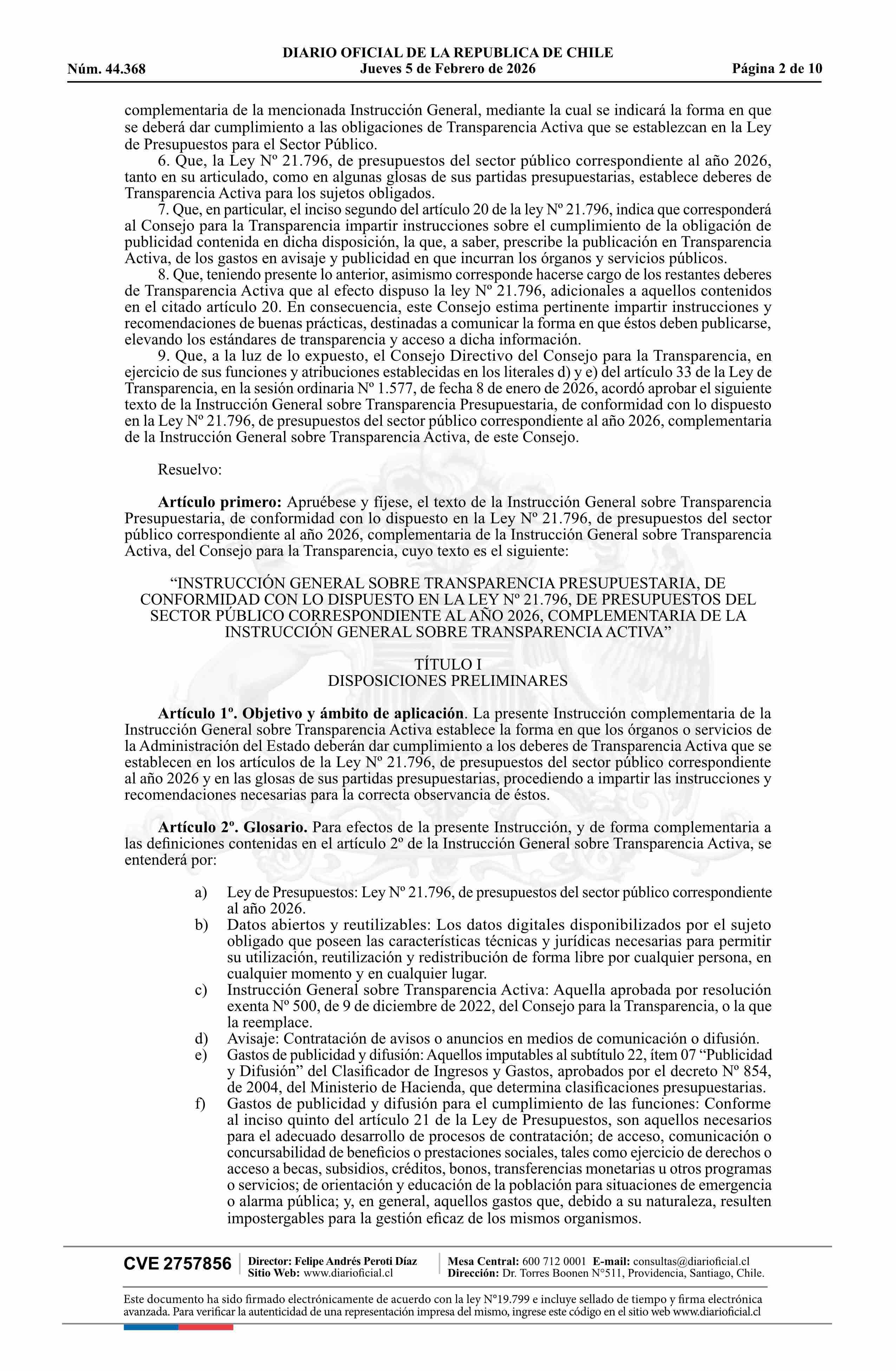 | Título: | Resolución exenta número E39, de 2026.- Aprueba texto de la Instrucción General sobre Transparencia Presupuestaria, de conformidad con lo dispuesto en la Ley Nº 21.796, de Presupuestos del Sector Público correspondiente al año 2026, complementaria de la Instrucción General sobre Transparencia Activa |