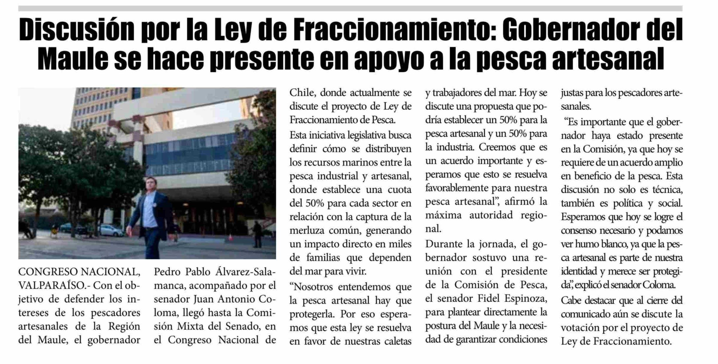 Discusión por la Ley de Fraccionamiento: Gobernador del Maule se hace presente en apoyo a la pesca artesanal