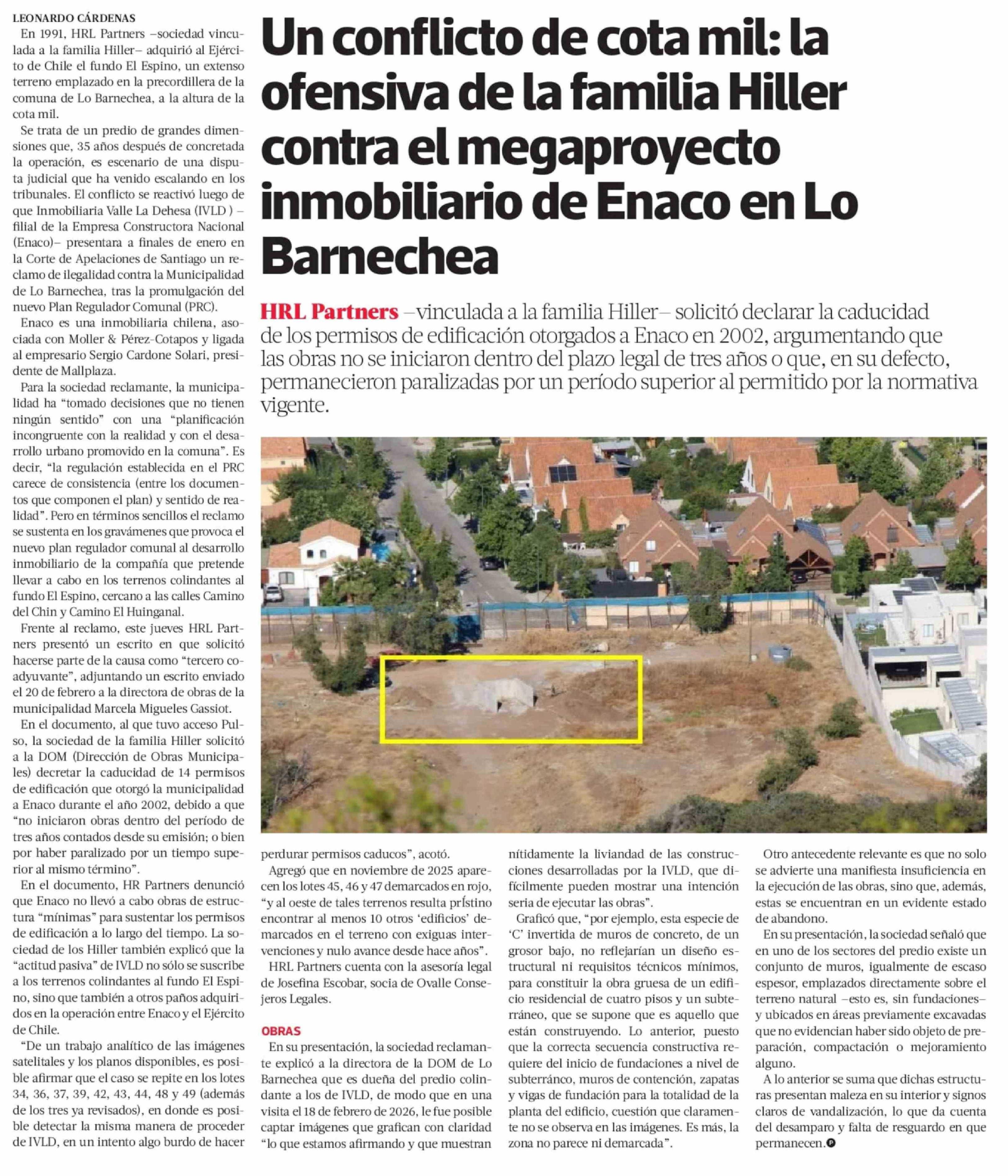 Un conflicto de cota mil: la ofensiva de la familia Hiller contra el megaproyecto inmobiliario de Enaco en Lo Barnechea