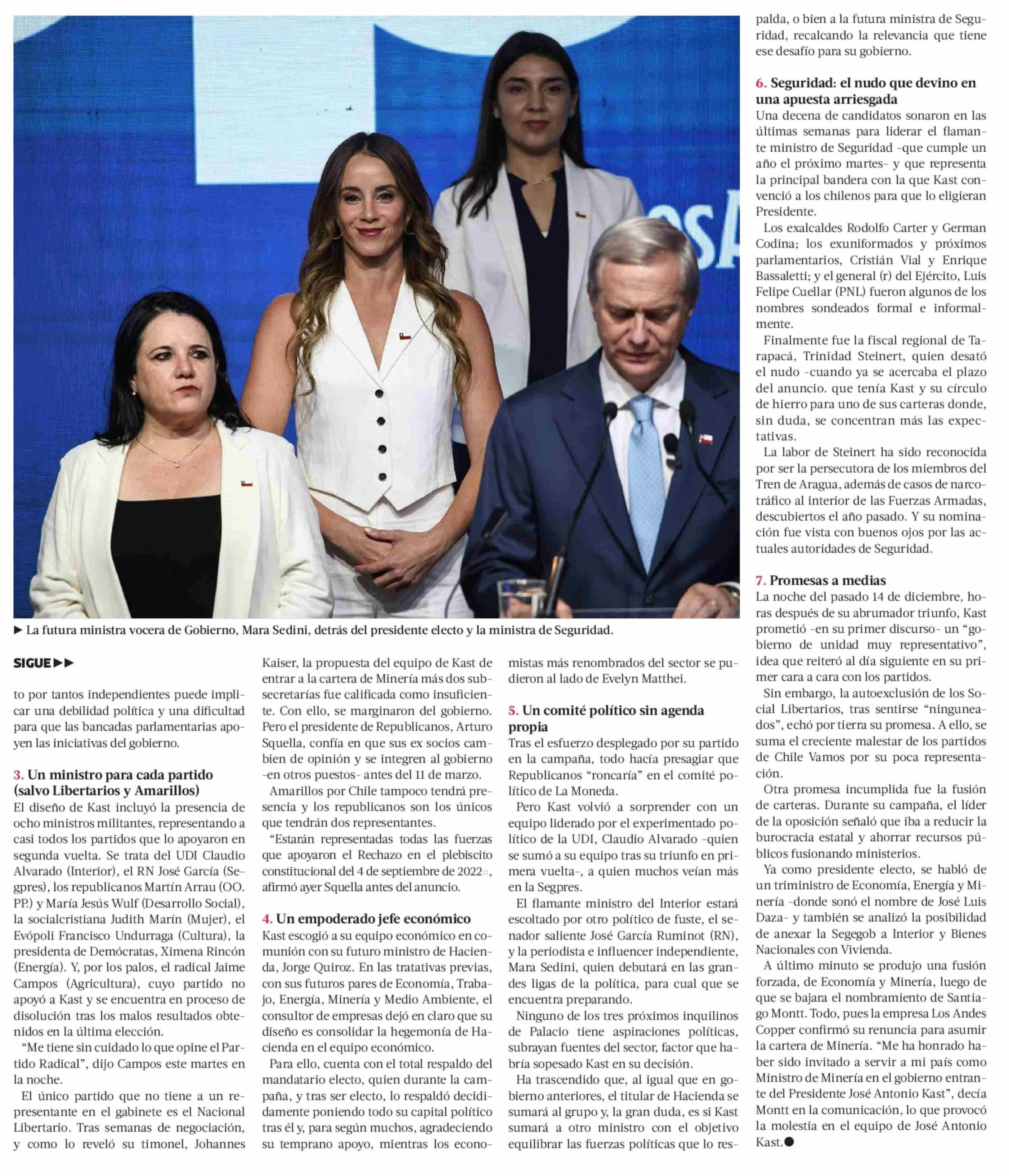 Siete claves del gabinete con que Kast se alista a gobernar