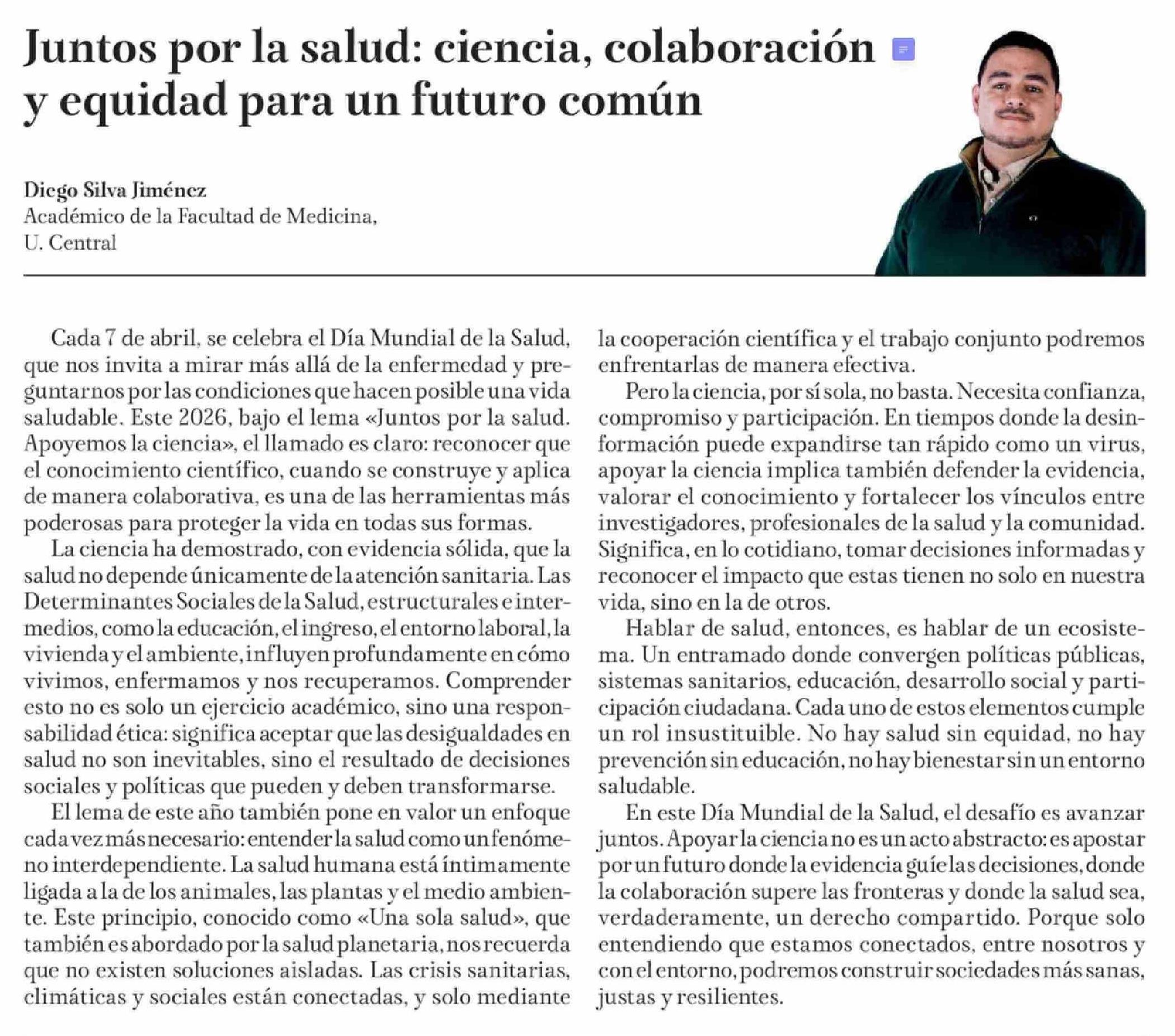 Título: Columnas de Opinión: Juntos por la salud: ciencia, colaboración y equidad para un futuro común
