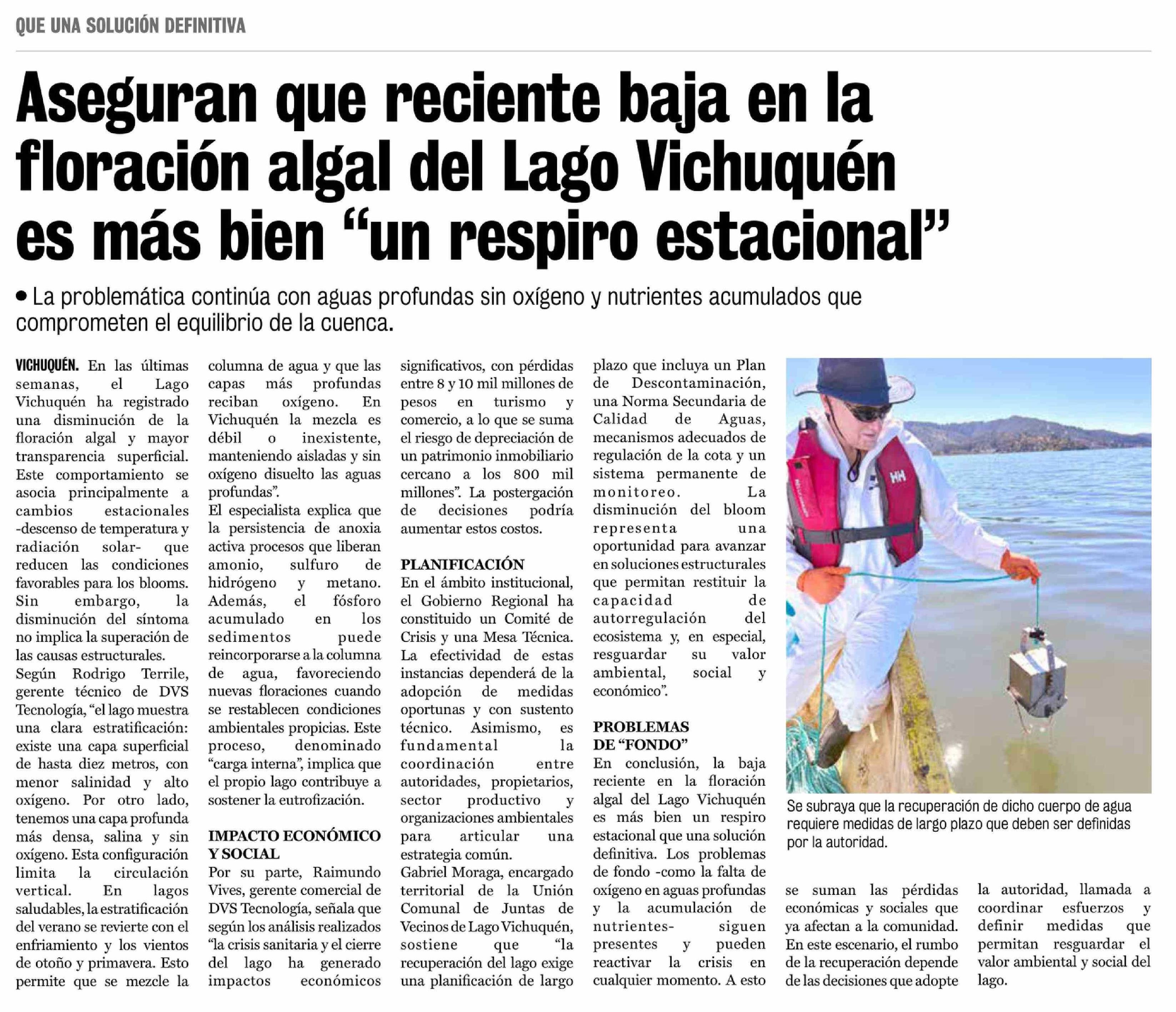 Aseguran que reciente baja en la floración algal del Lago Vichuquen es más bien "un respiro estacional"
