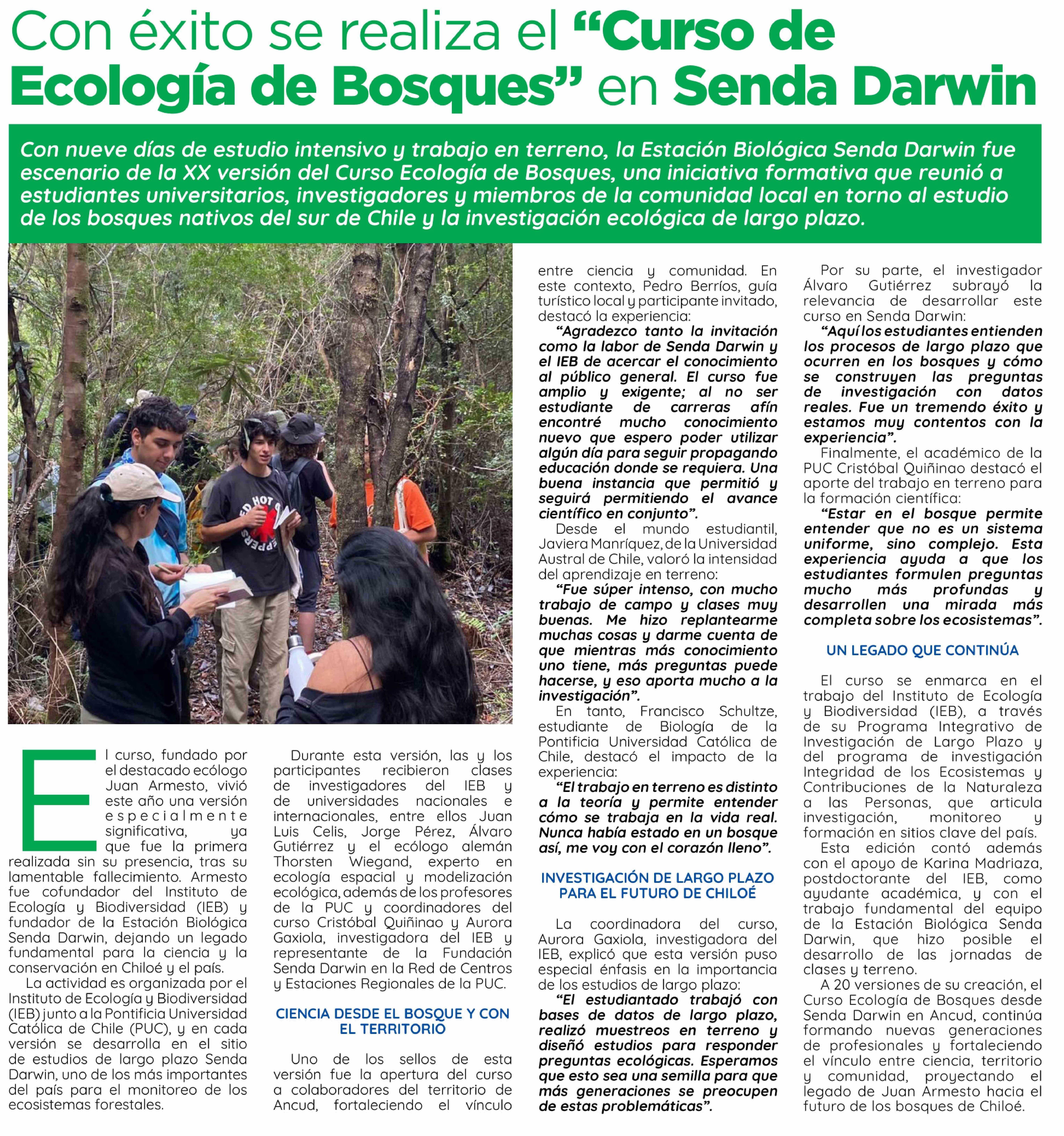 Con éxito se realiza el "Curso de Ecología de Bosques" en Senda Darwin