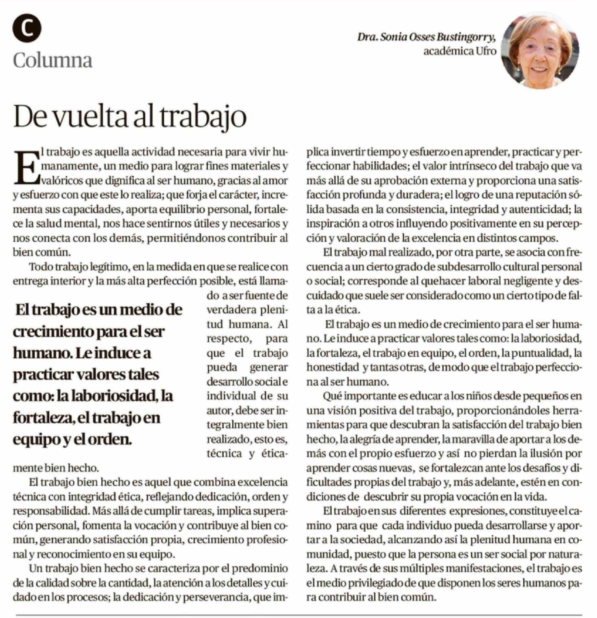 Título: Columnas de Opinión: De vuelta al trabajo