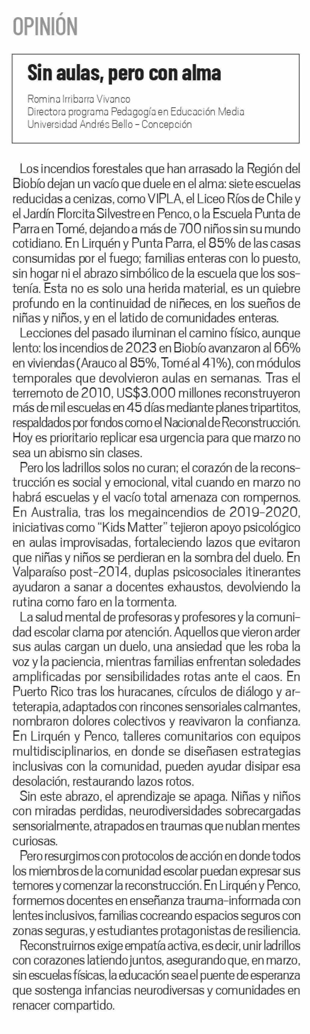 Título: Columnas de Opinión: Sin aulas, pero con alma