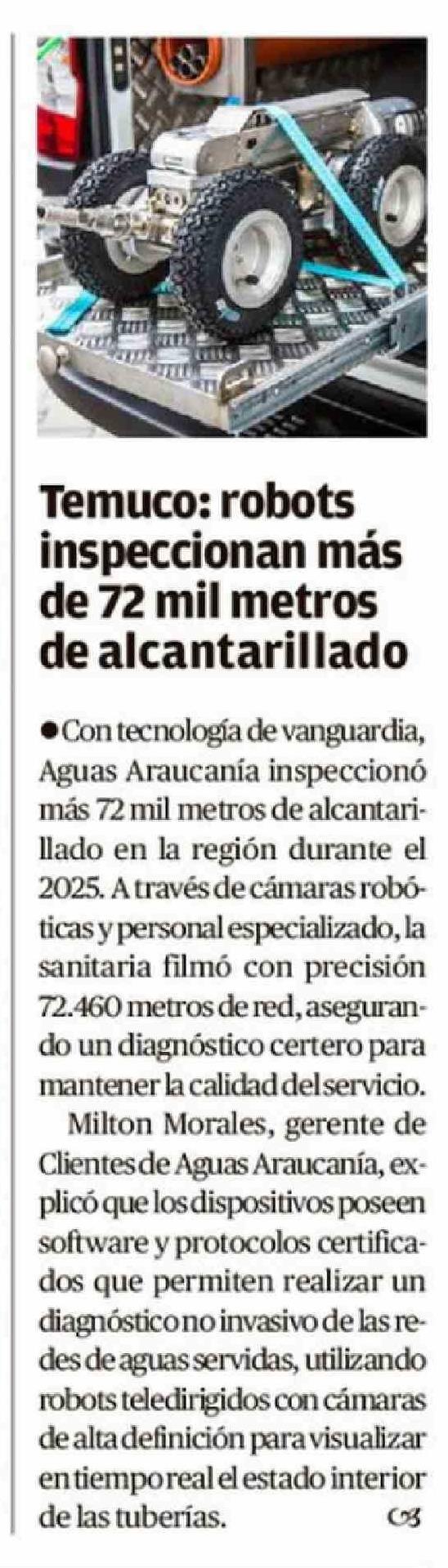 Temuco: robots inspeccionan más de 72 mil metros de alcantarillado