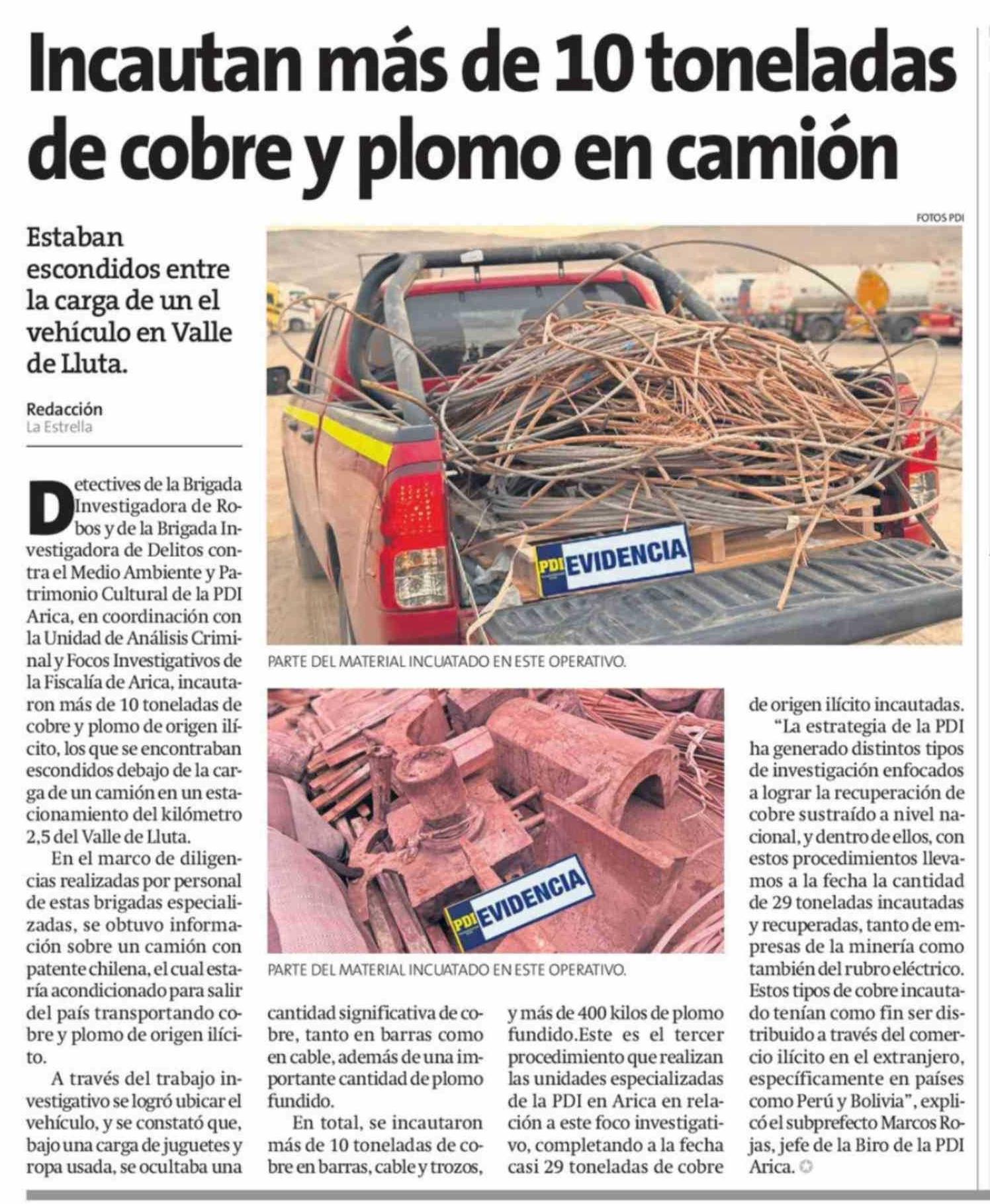 Incautan más de 10 toneladas de cobre y plomo en camión