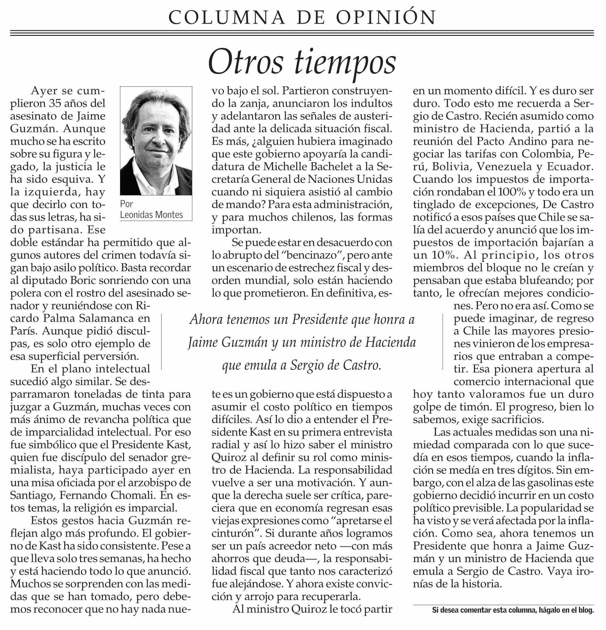 Columnas de Opinión: Otros tiempos