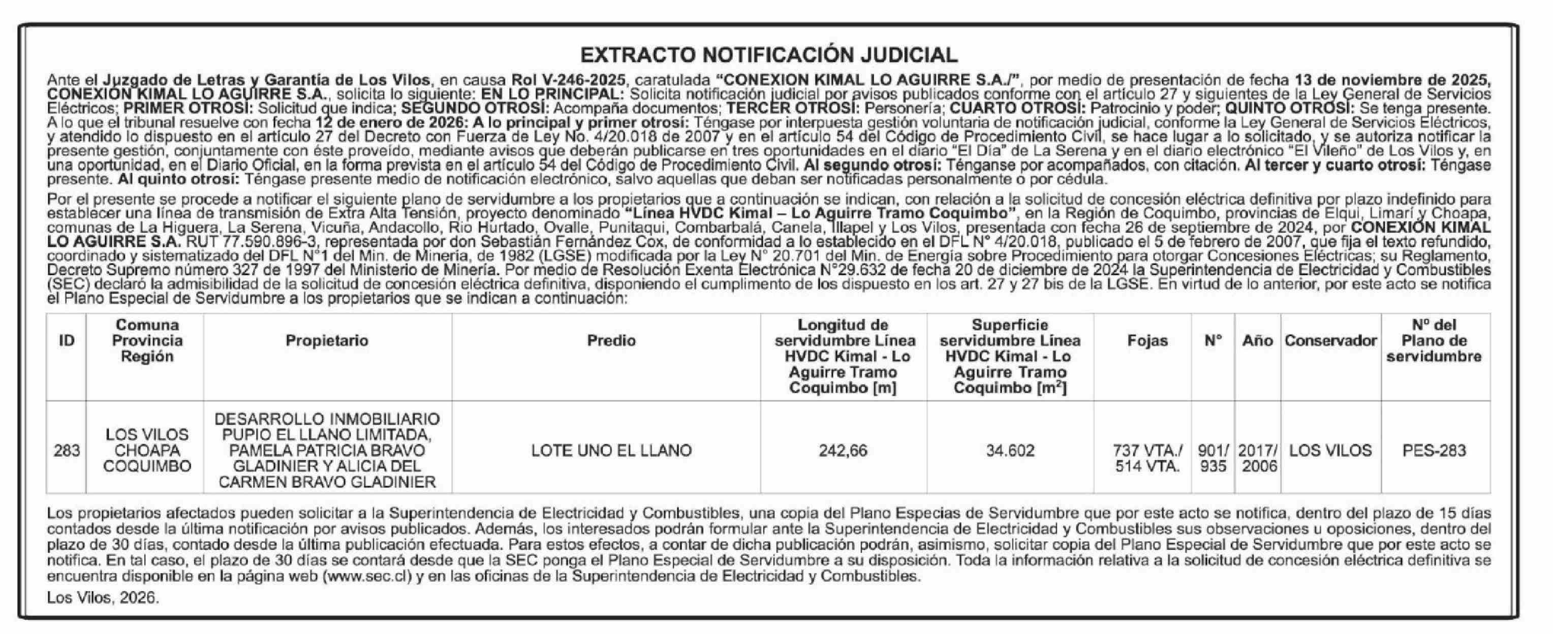 Extractos: EXTRACTO NOTIFICACIÓN JUDICIAL