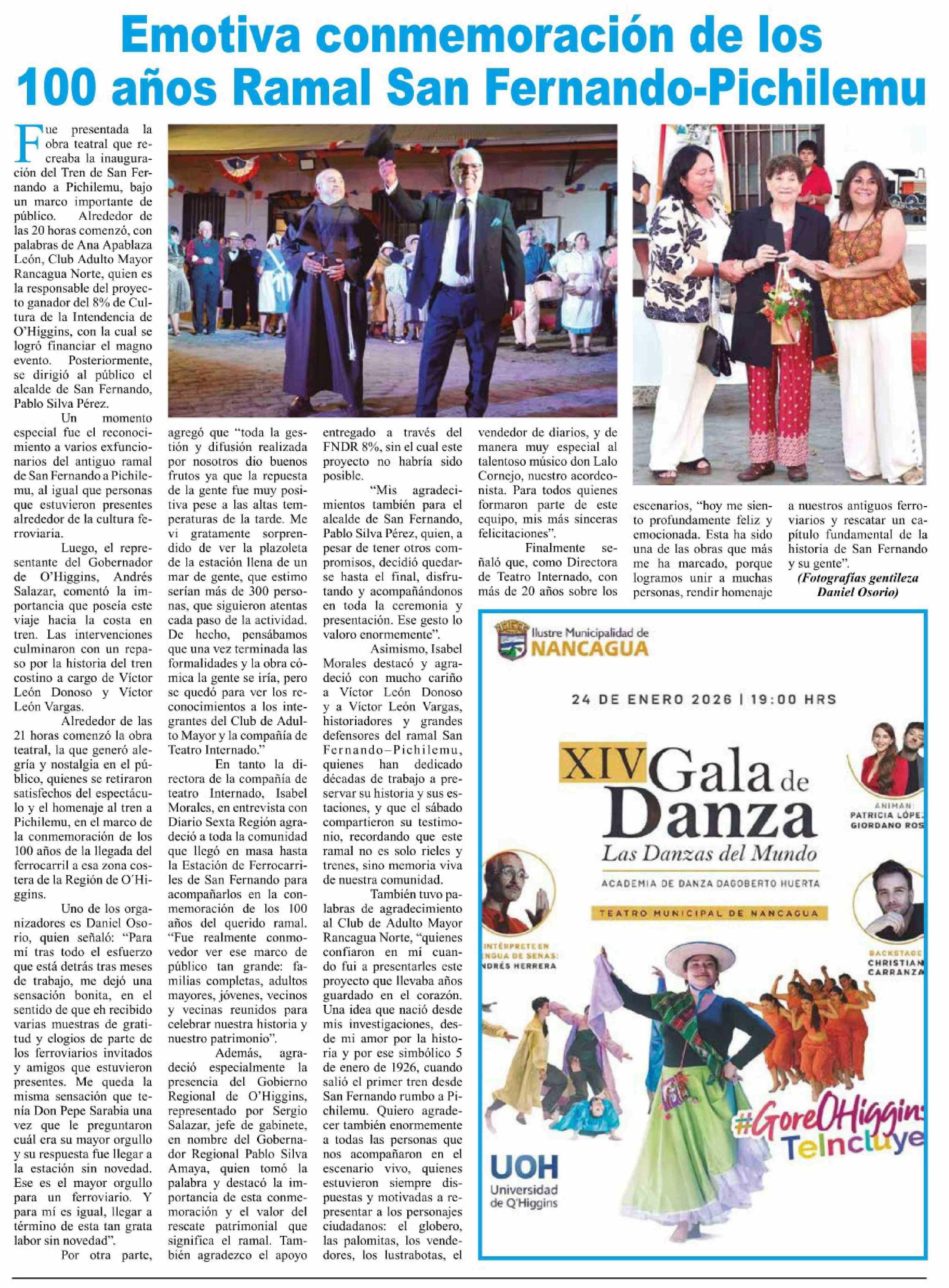 Emotiva conmemoración de los 100 años Ramal San Fernando-Pichilemu