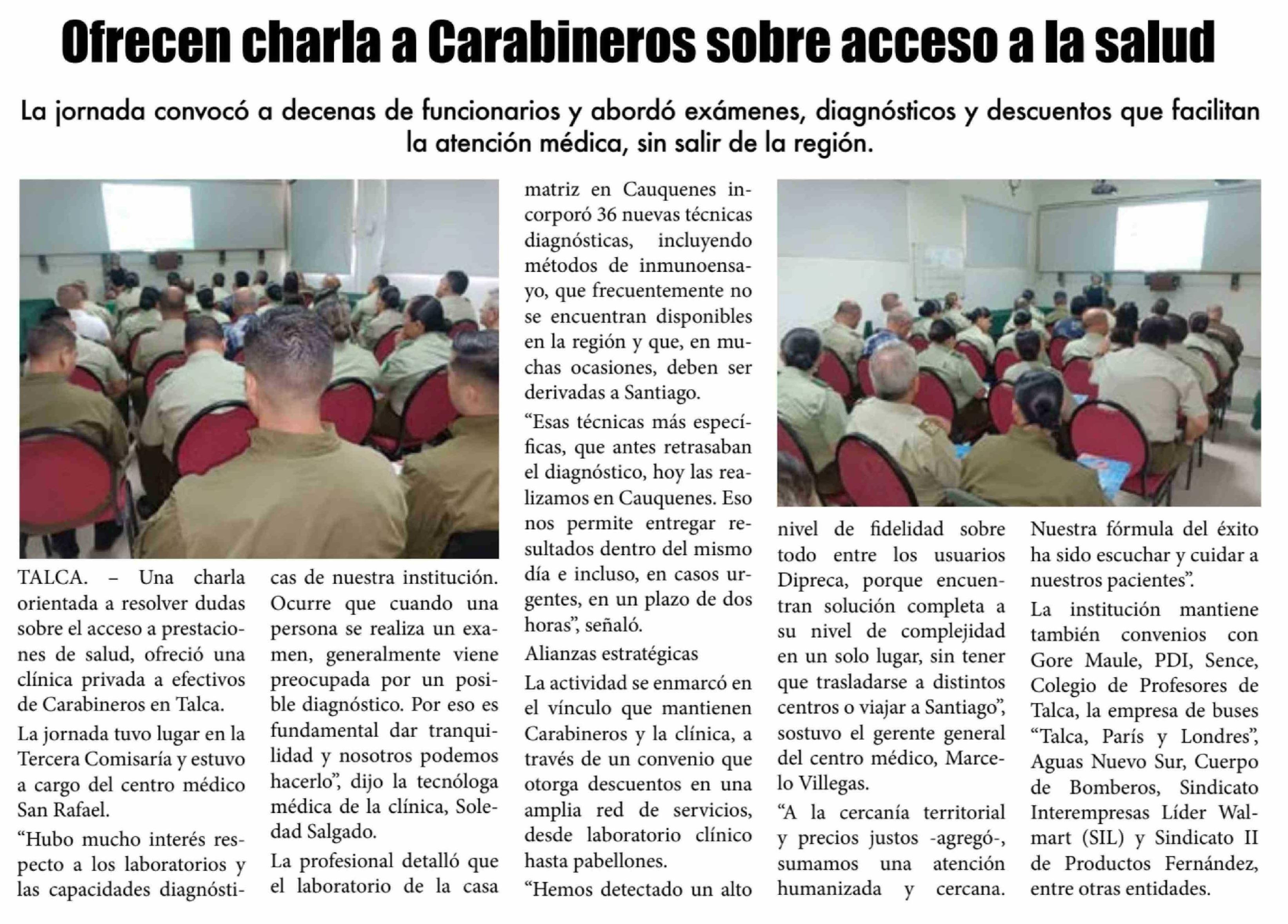 Ofrecen charla a Carabineros sobre acceso a la salud