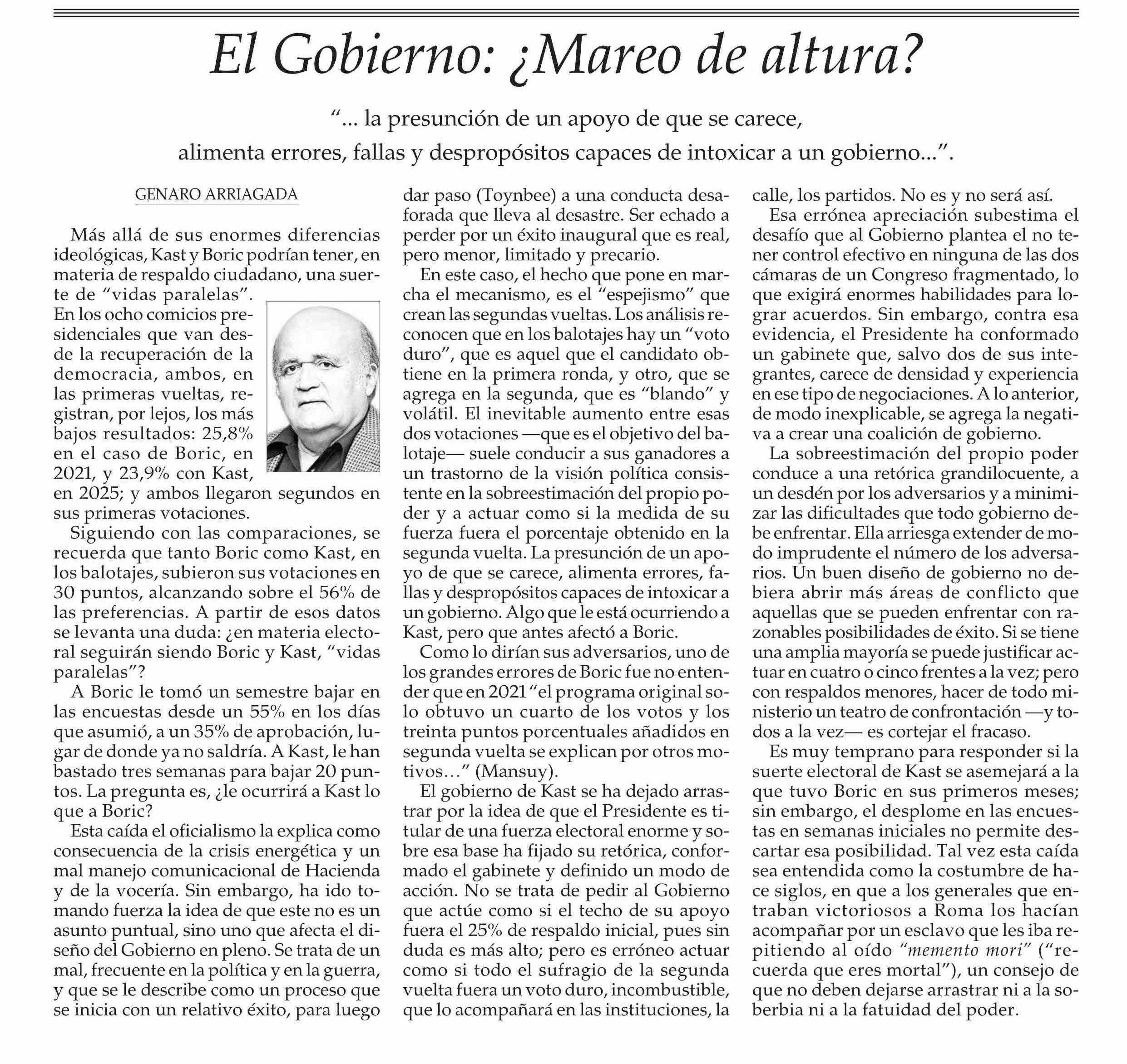 COLUMNAS DE OPINIÓN: El Gobierno: ¿Mareo de altura?
