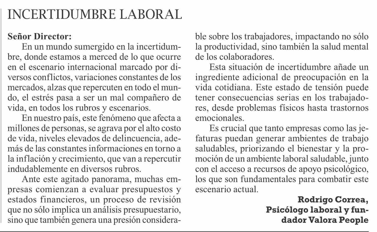 Cartas: IncertiduMBre laBoral