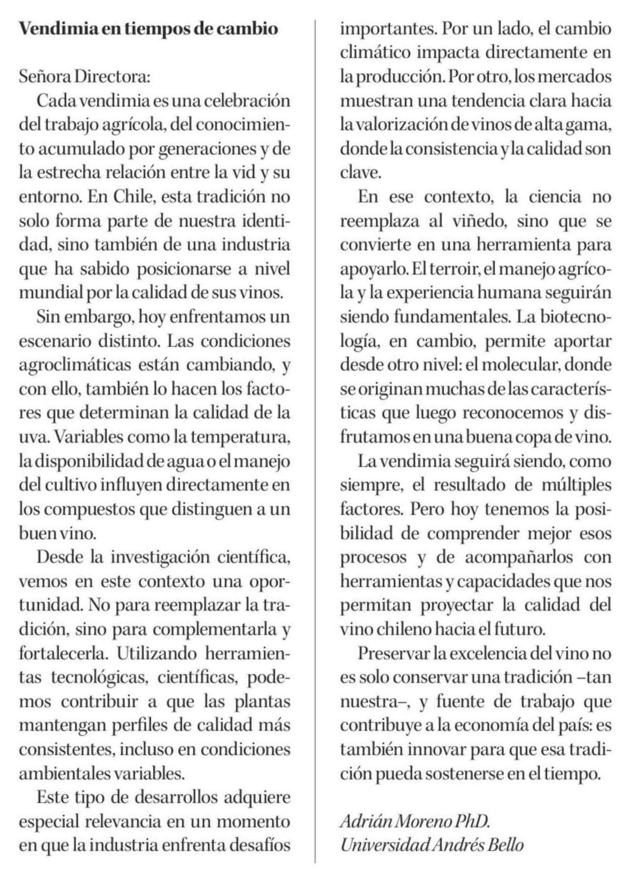 Cartas: Vendimia en tiempos de cambio