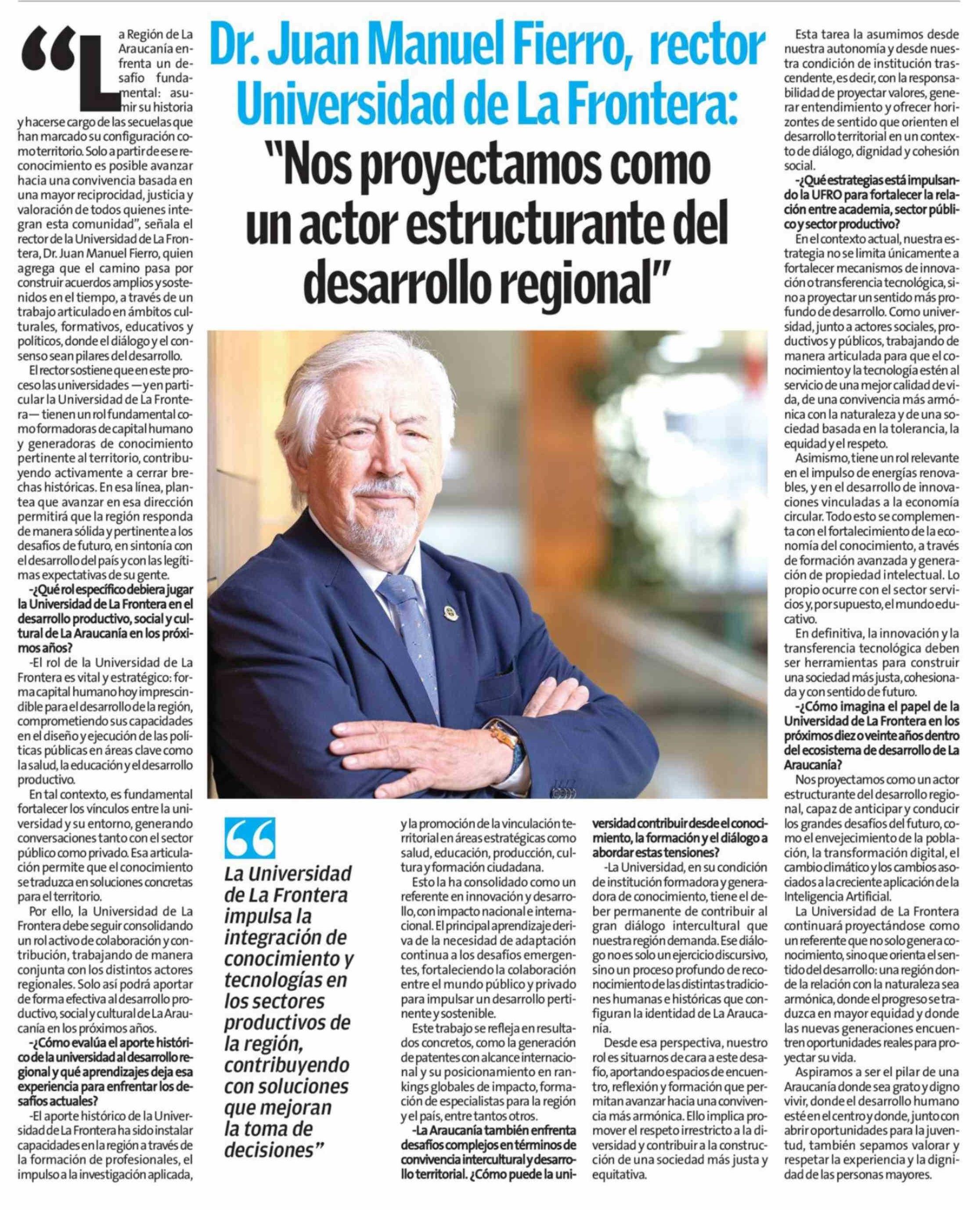 Título: Dr. Juan Manuel Fierro, rector Universidad de La Frontera: "Nos proyectamos como un actor estructurante del desarrollo regional"