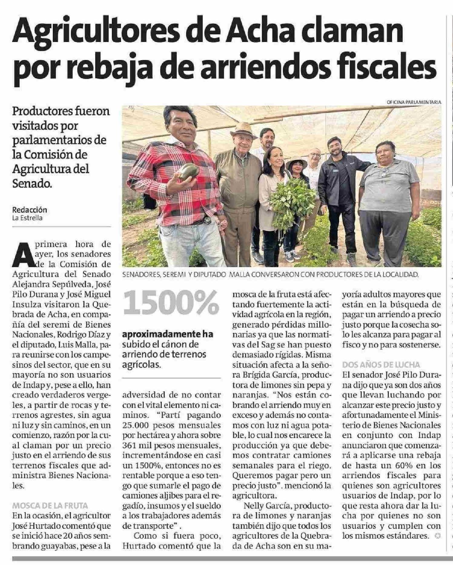 Agricultores de Acha claman por rebaja de arriendos fiscales