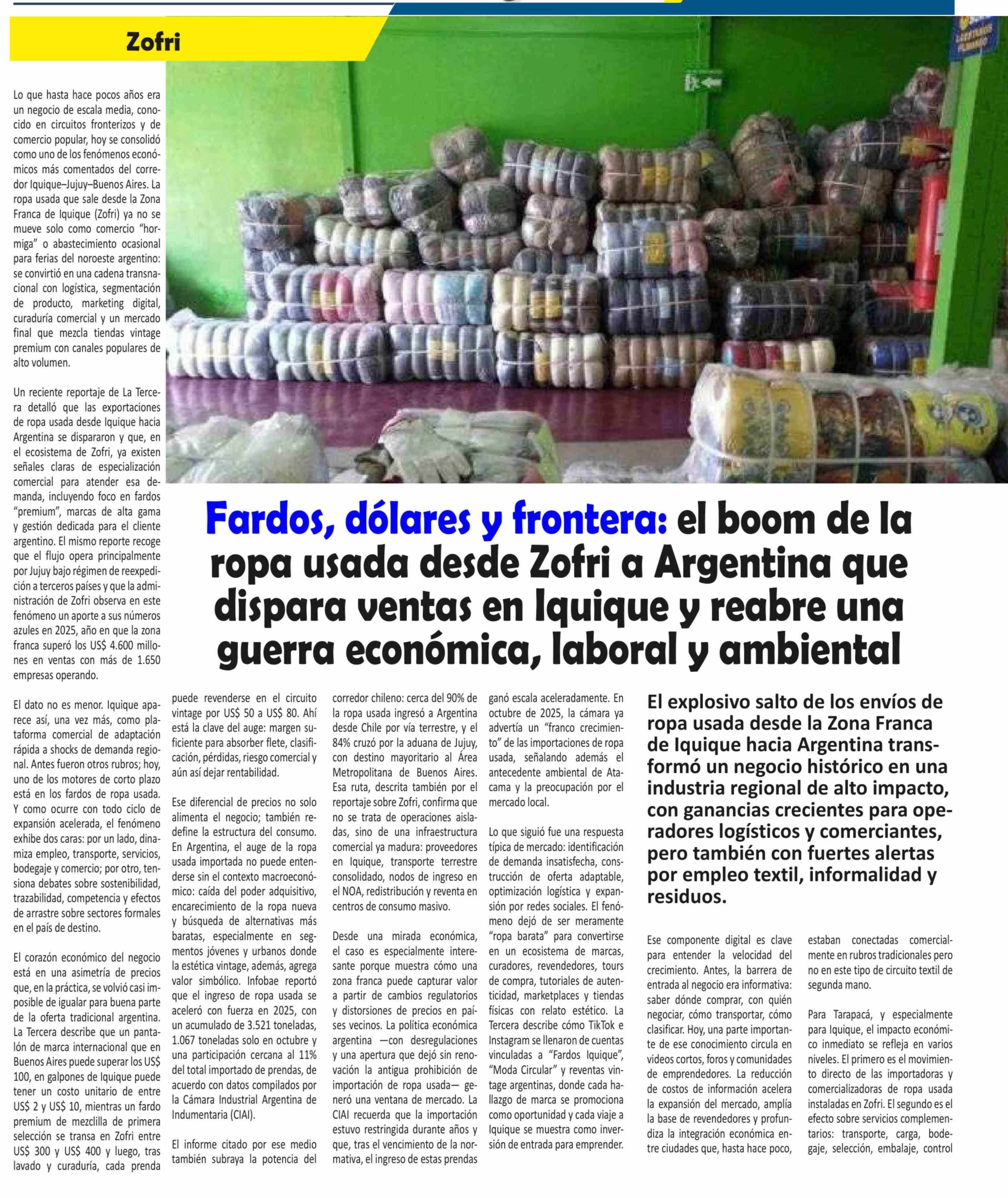 Fardos, dólares y frontera: el boom de la ropa usada desde Zofri a Argentina que dispara ventas en Iquique y reabre una guerra económica, laboral y ambiental