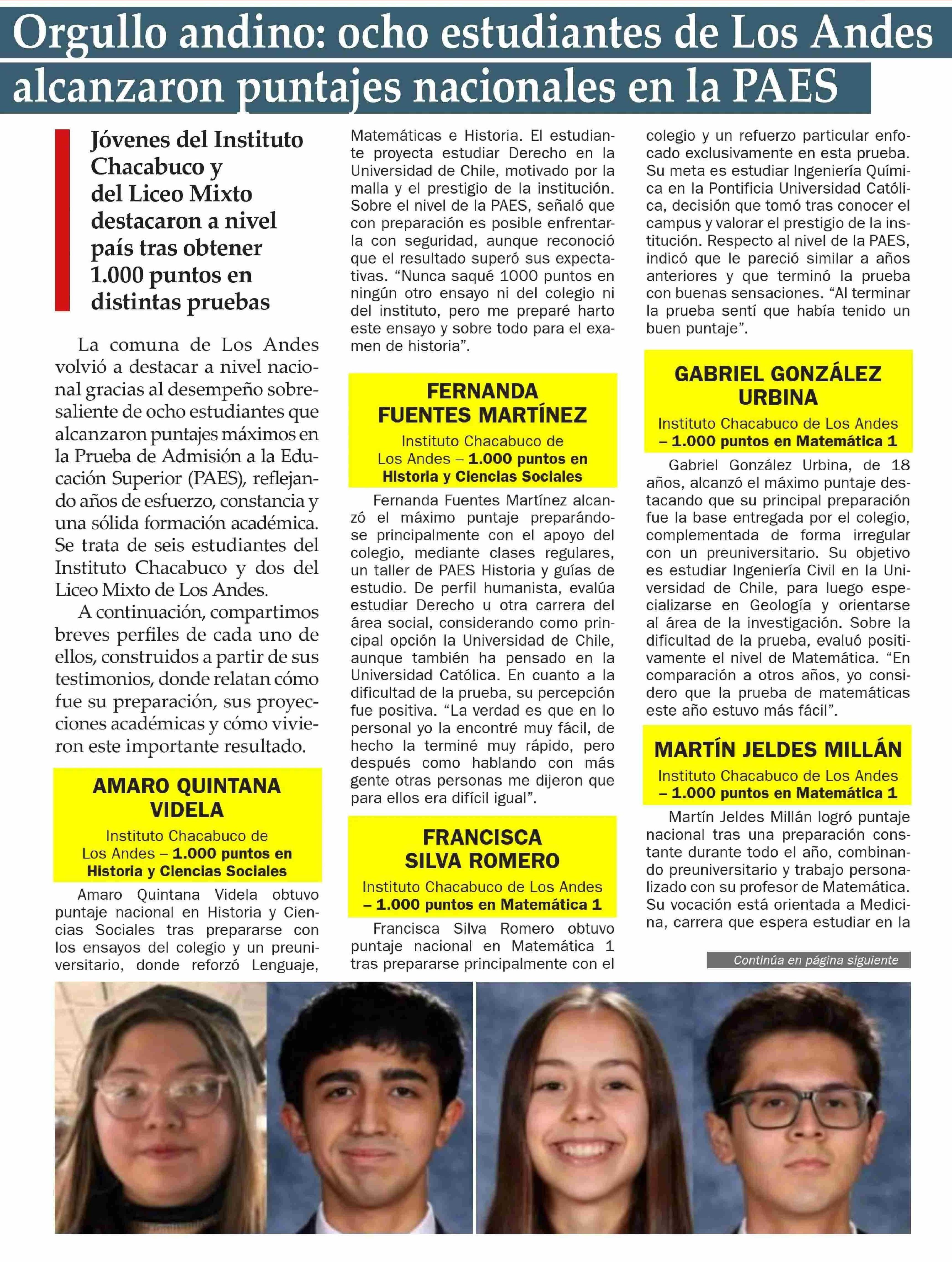 Título: Orgullo andino: ocho estudiantes de Los Andes alcanzaron puntajes nacionales en la PAES
