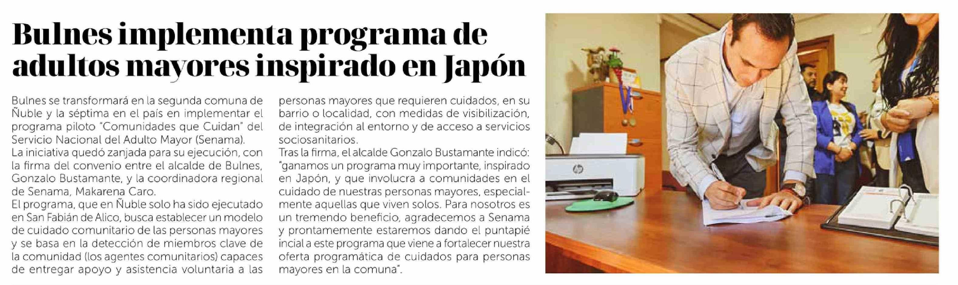 Bulnes implementa programa de adultos mayores inspirado en Japón