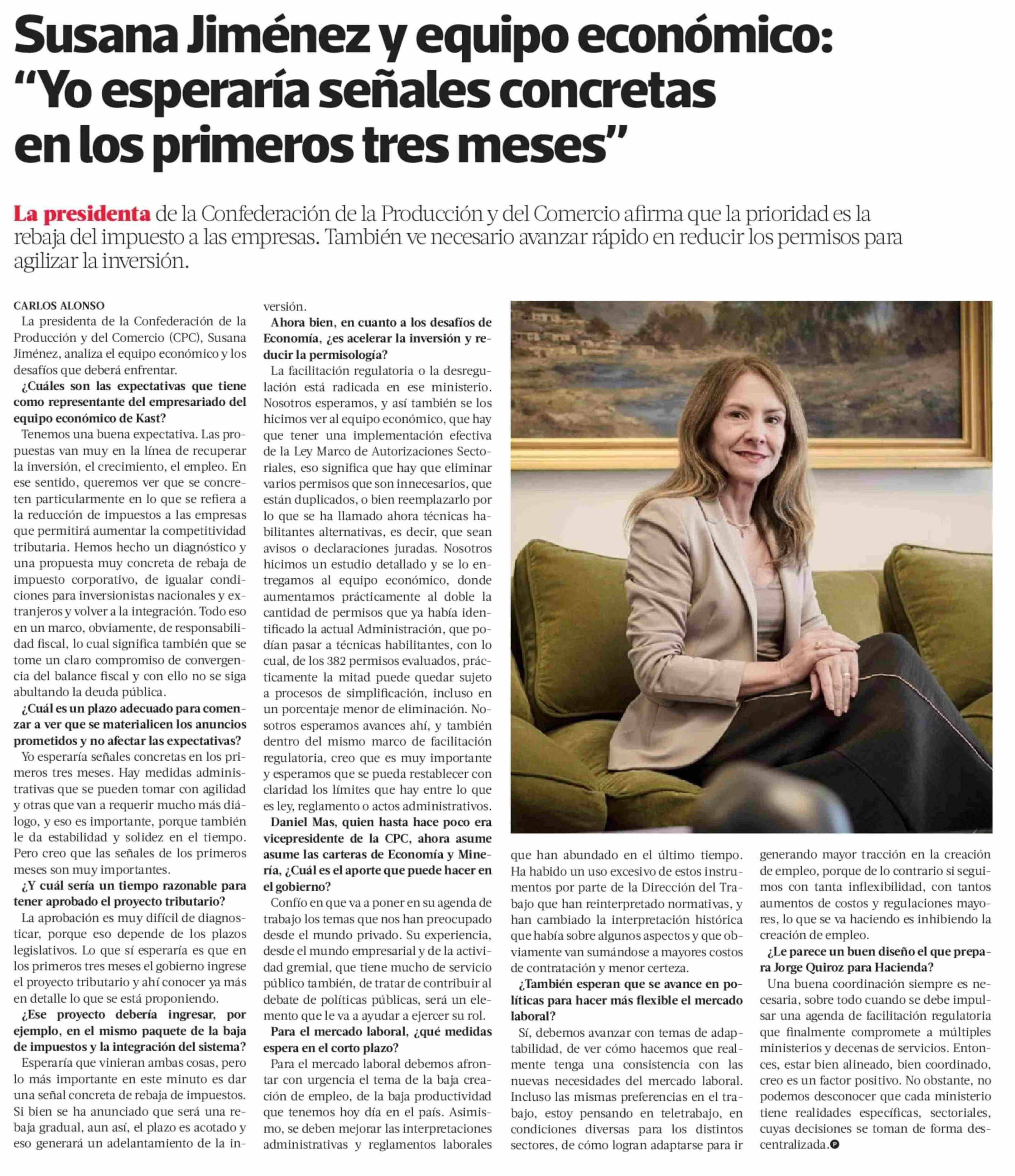 Susana Jiménez y equipo económico: "Yo esperaría señales concretas en los primeros tres meses"