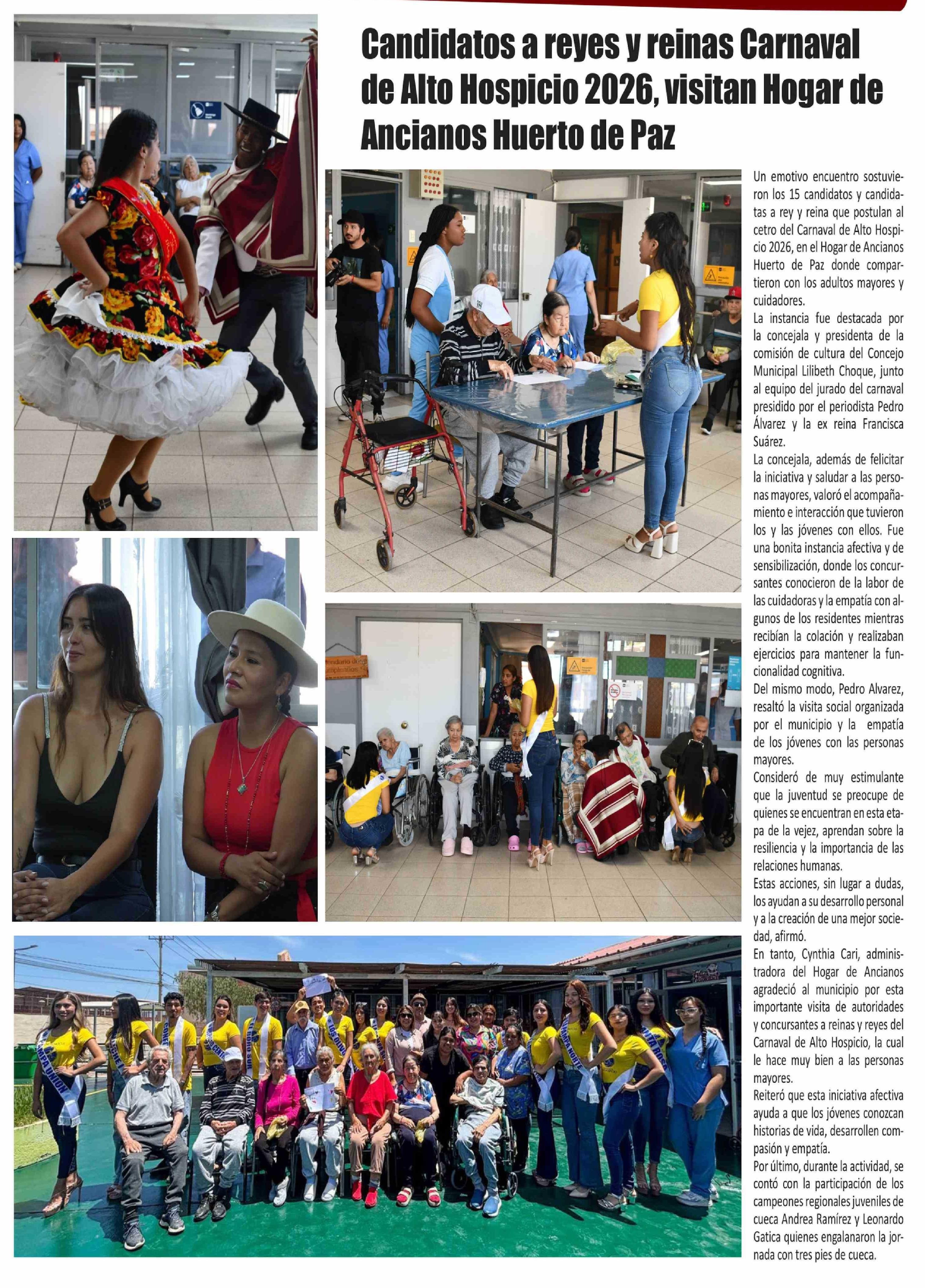 Candidatos a reyes y reinas Carnaval de Alto Hospicio 2026, visitan Hogar de Ancianos Huerto de Paz