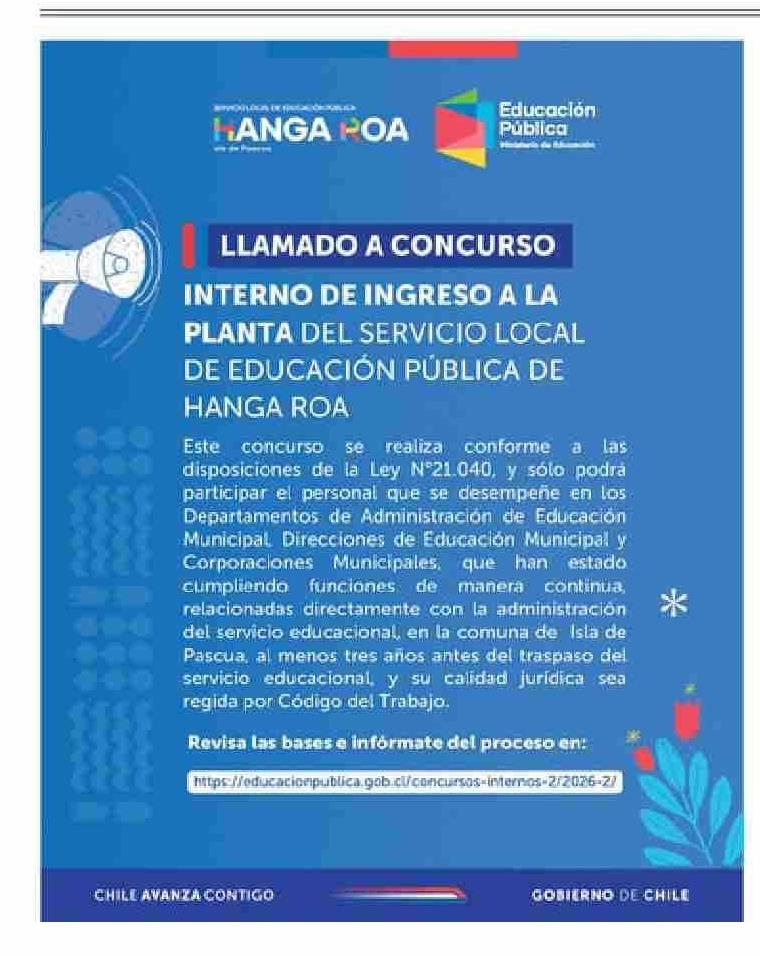 Aviso Licitaciones: ANGA ROA - EDUCACIÓN PÚBLICA