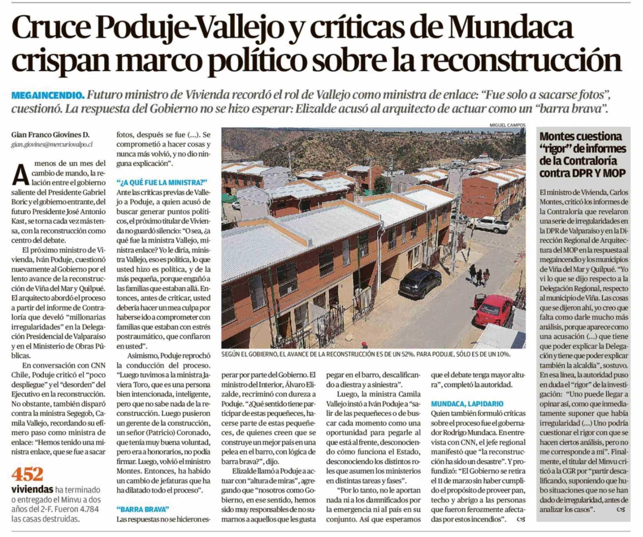 Cruce Poduje-Vallejo y críticas de Mundaca crispan marco político sobre la reconstrucción