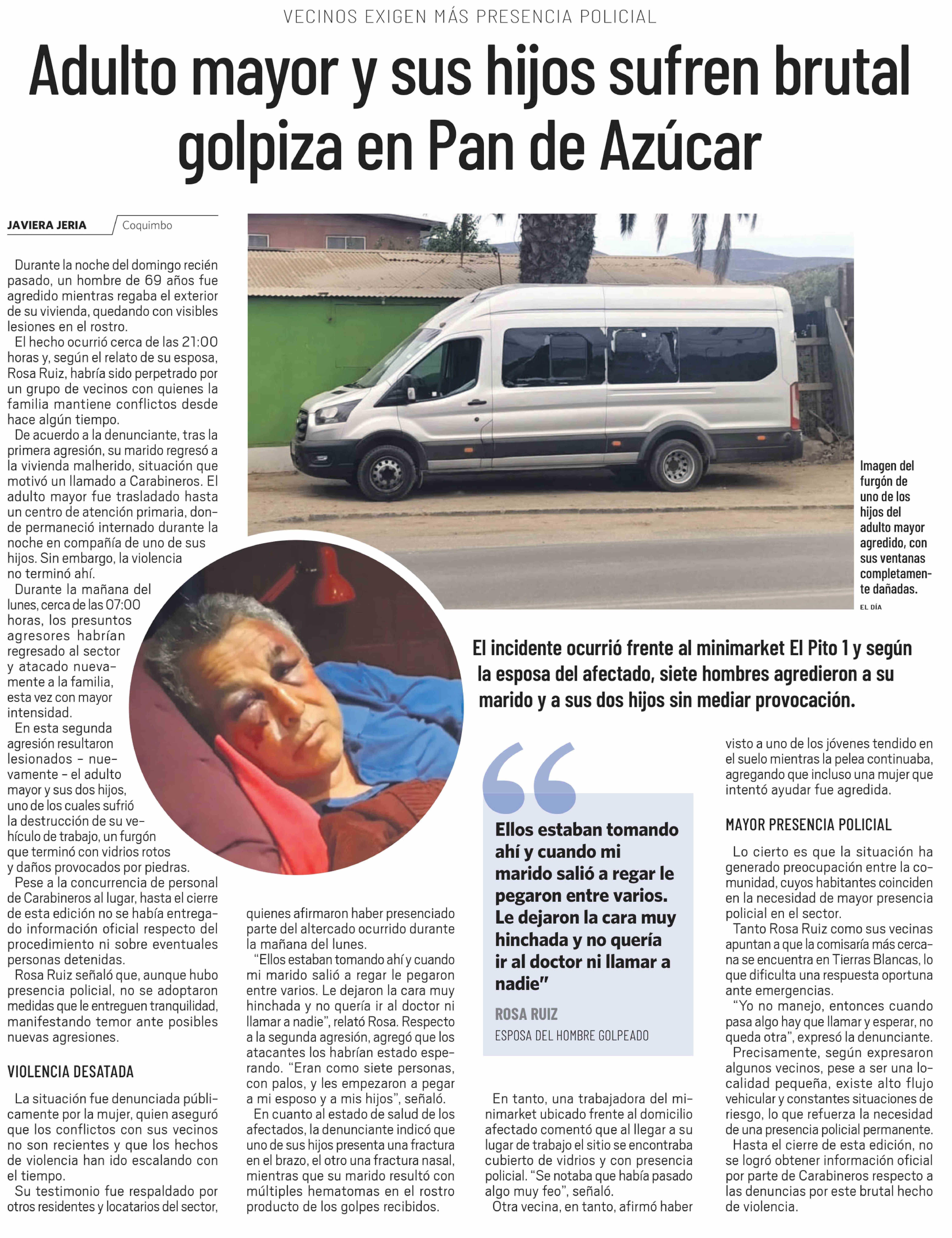 Adulto mayor y sus hijos sufren brutal golpiza en Pan de Azúcar