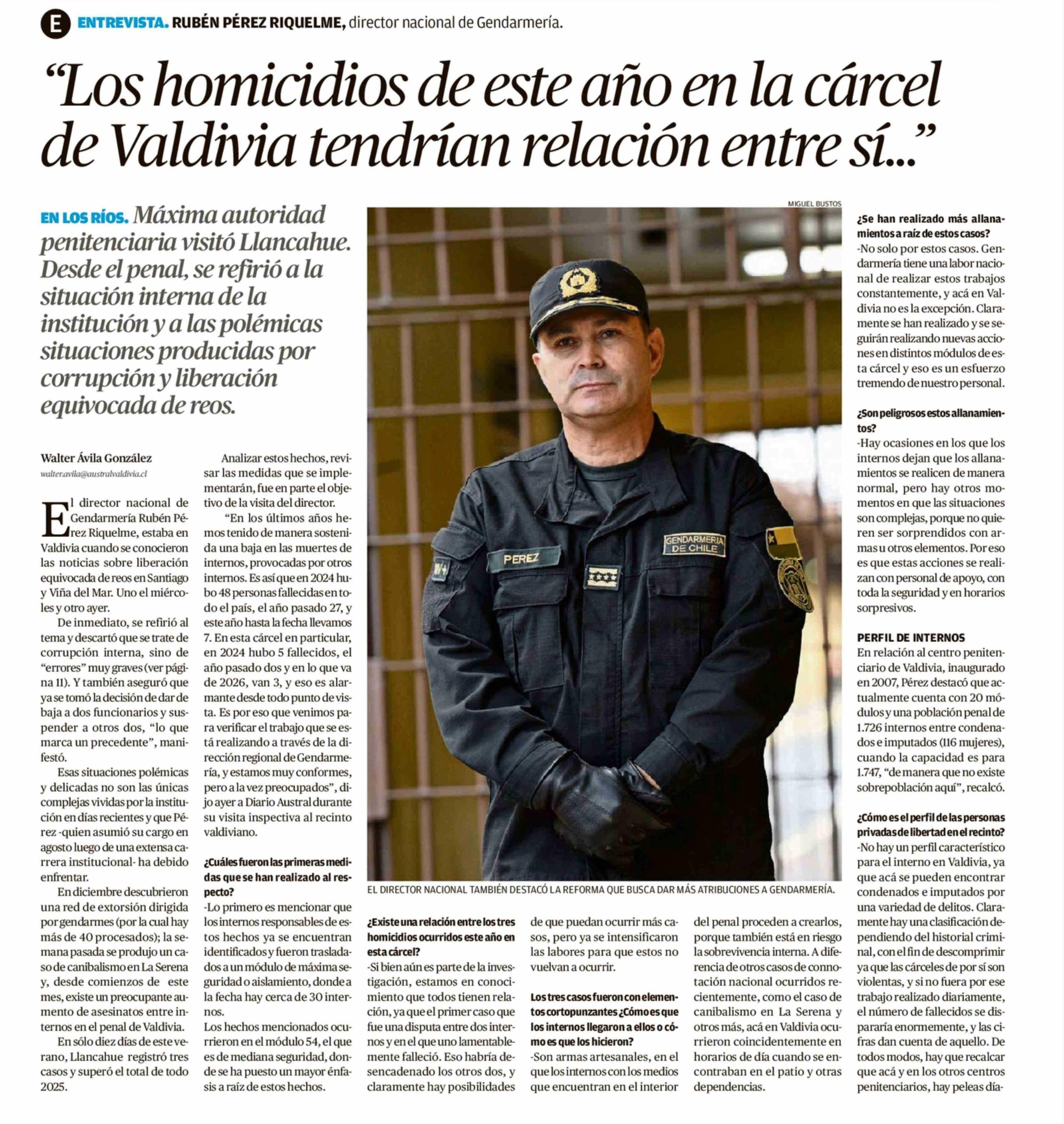 “Los homicidios de este año en la cárcel de Valdivia tendrian relación entre sí...”