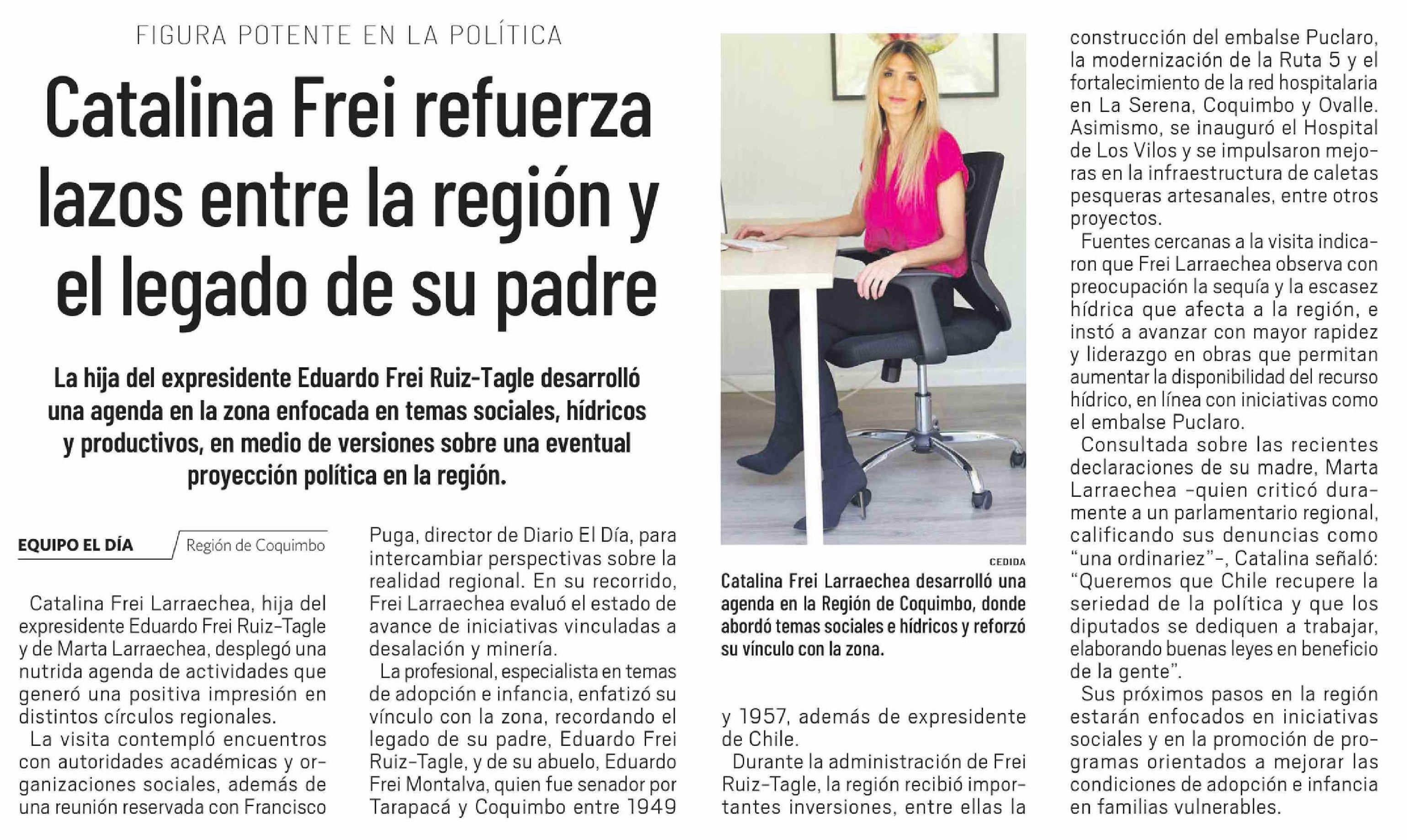 Catalina Frei refuerza lazos entre la región y el legado de su padre