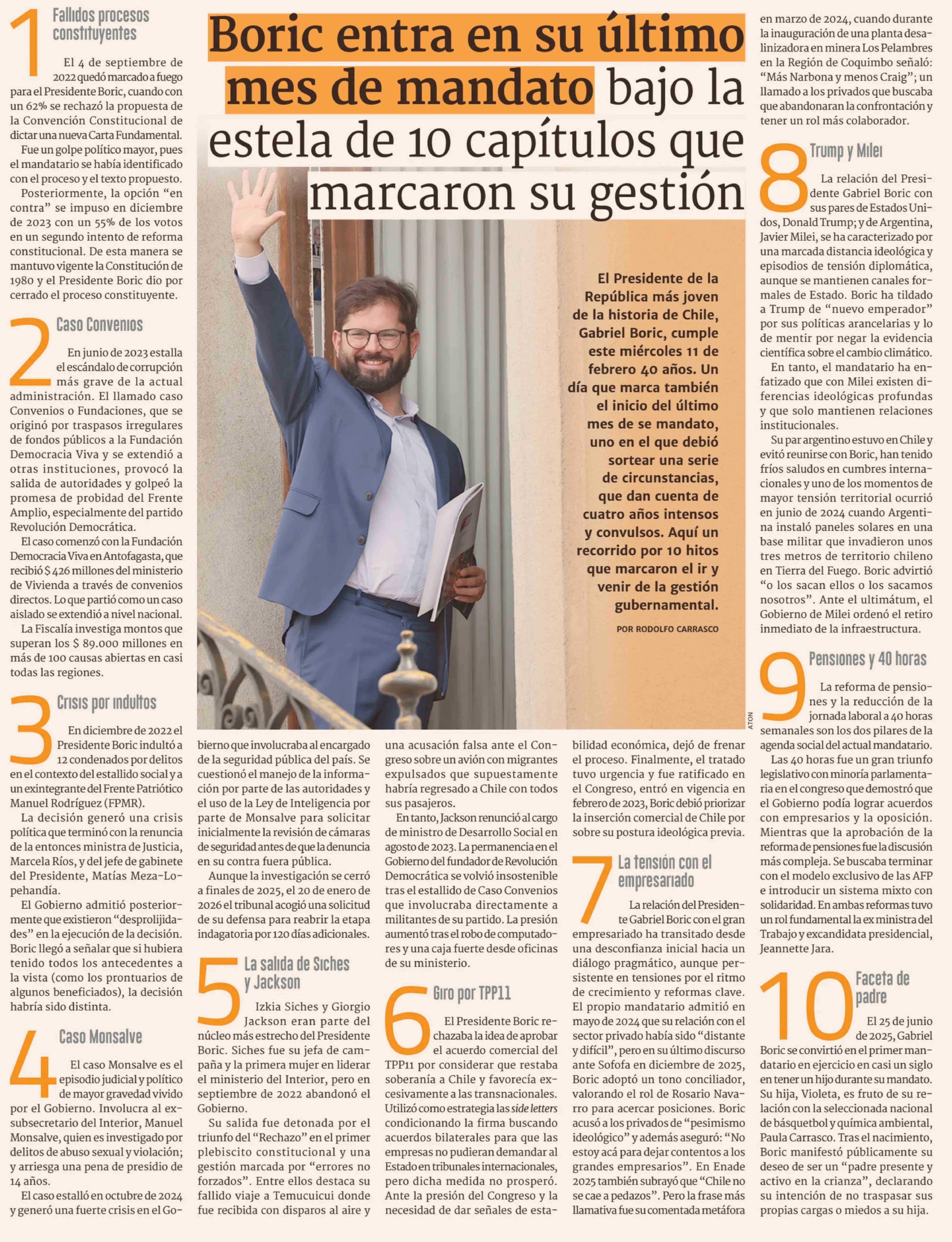 Boric entra en su último mes de mandato bajo la estela de 10 capítulos que marcaron su gestión