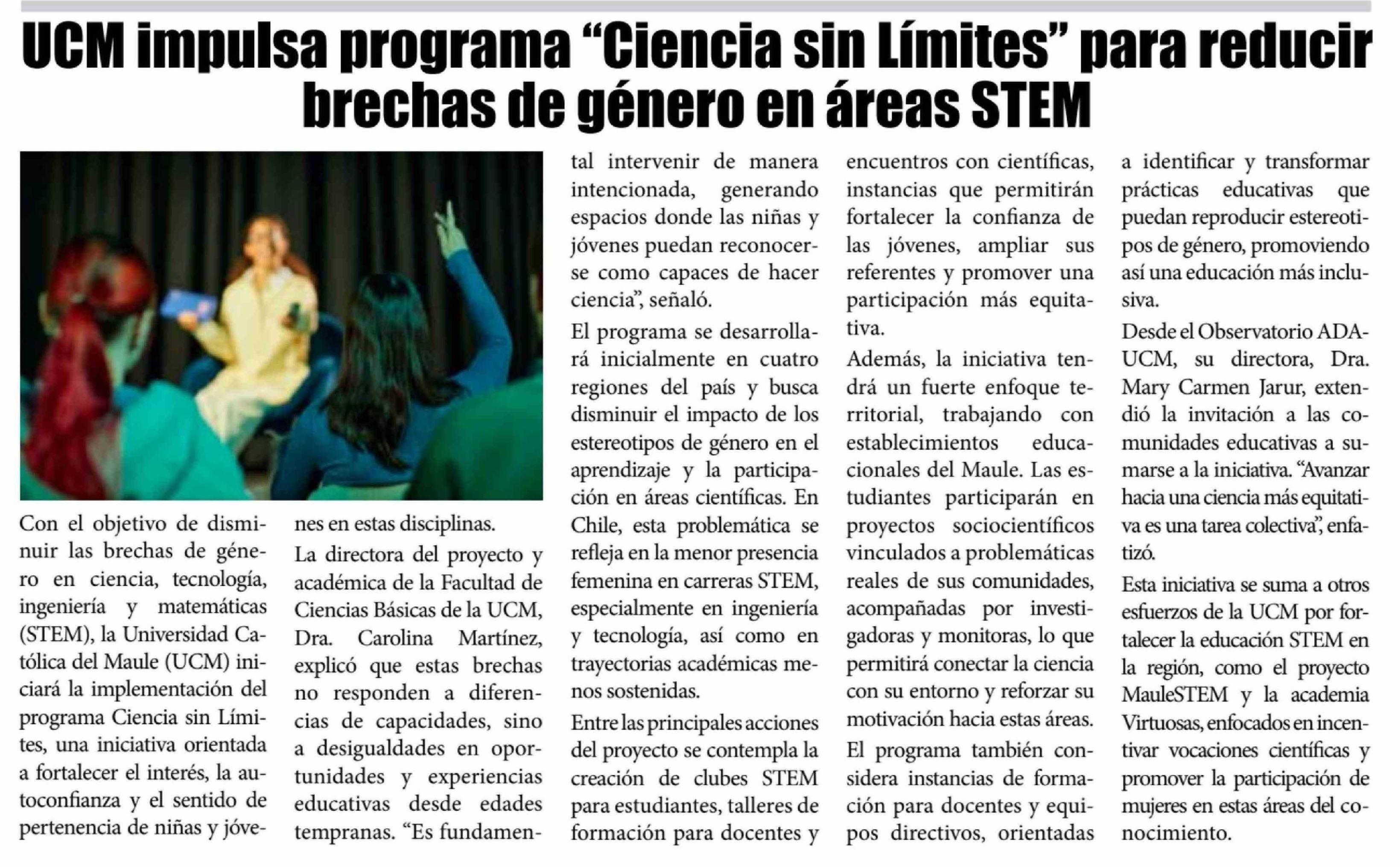 UCM impulsa programa "Ciencia sin Límites" para reducir brechas de género en áreas STEM