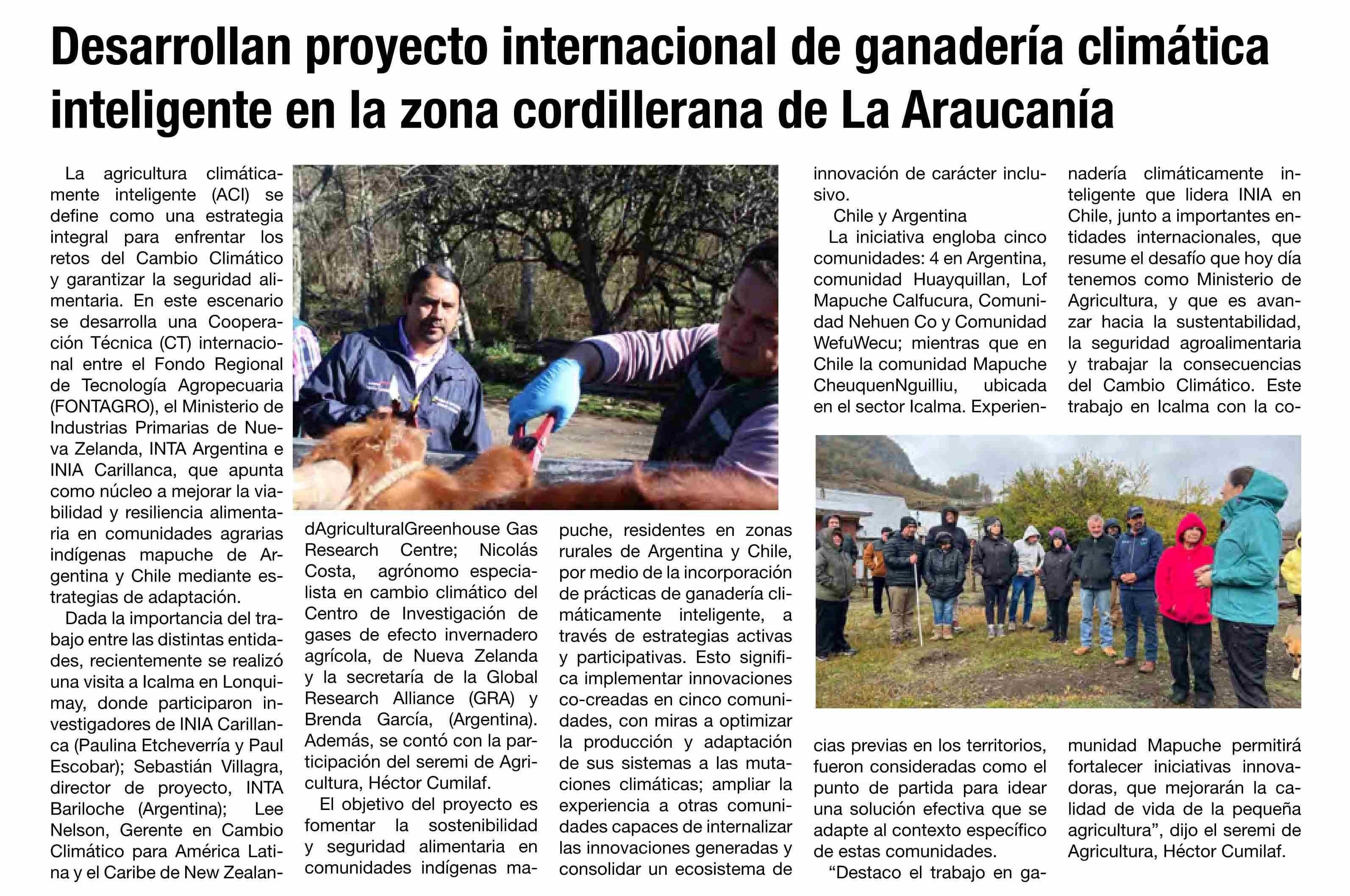 Desarrollan proyecto internacional de ganadería climática inteligente en la zona cordillerana de La Araucanía
