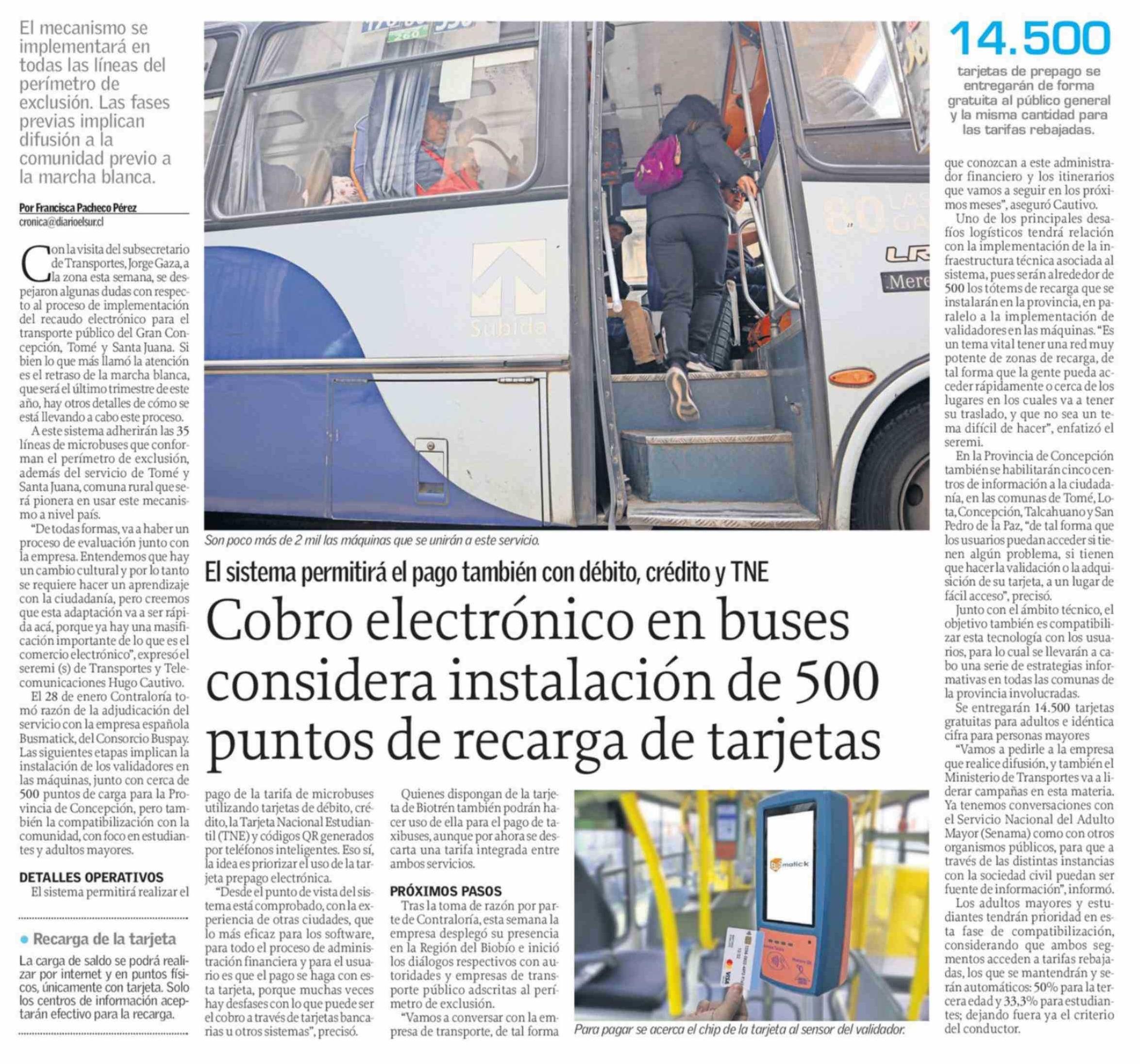 Cobro electrónico en buses considera instalación de 500 puntos de recarga de tarjetas