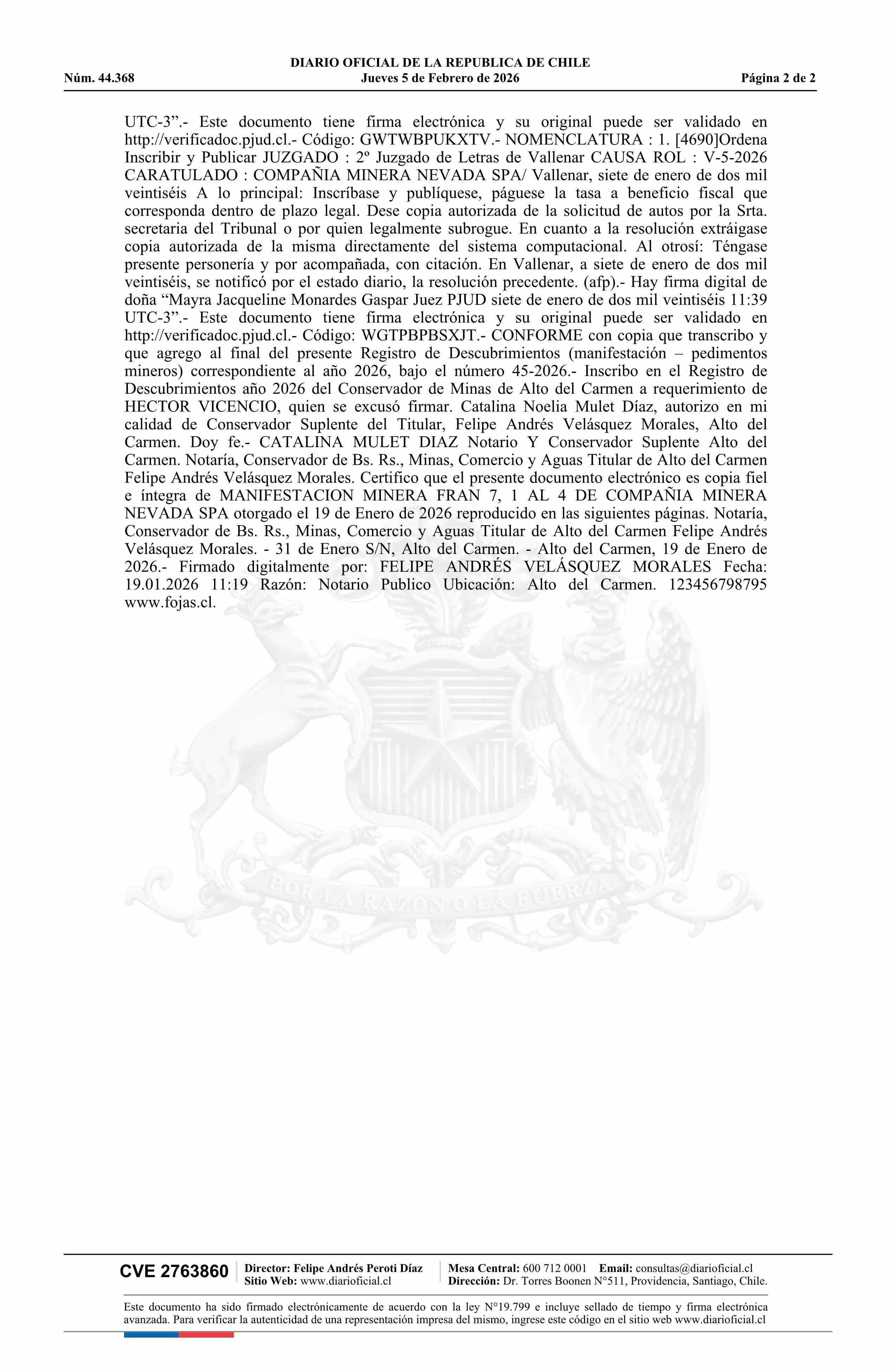 DIARIO OFICIAL CHILE - BOLETÍN OFICIAL DE MINERÍA (DIARIO OFICIAL CHILE – BOM – MANIFESTACIONES MIN)