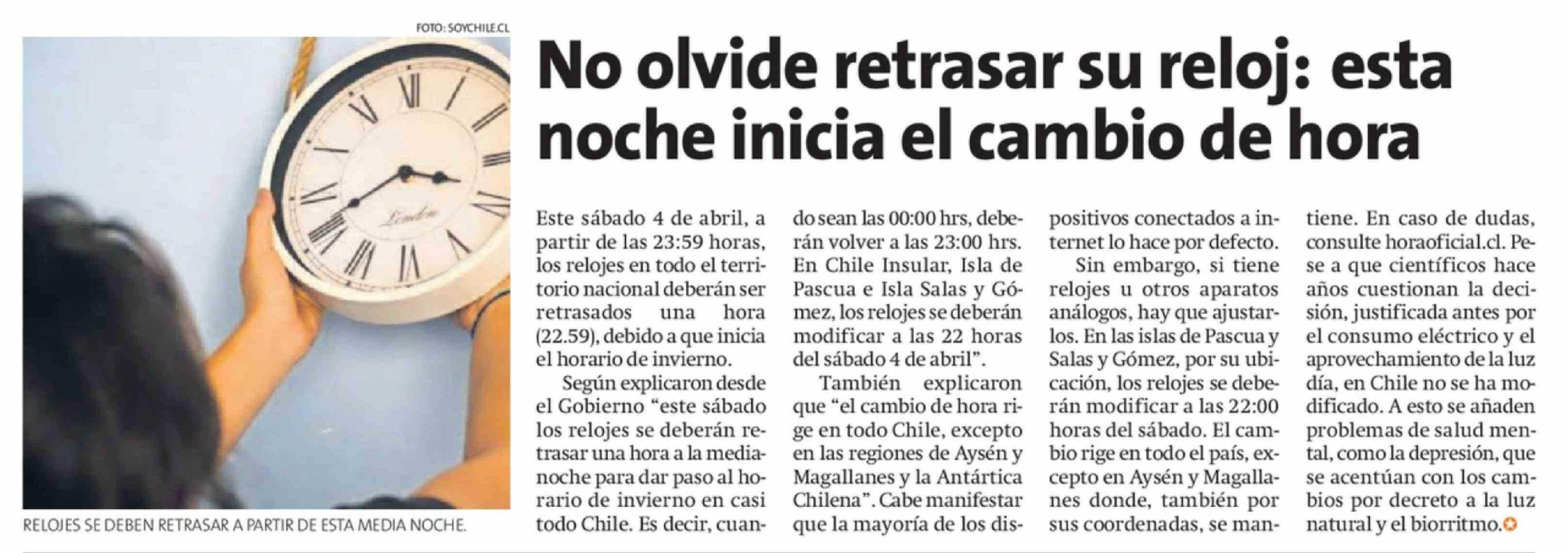 No olvide retrasar su reloj: esta noche inicia el cambio de hora