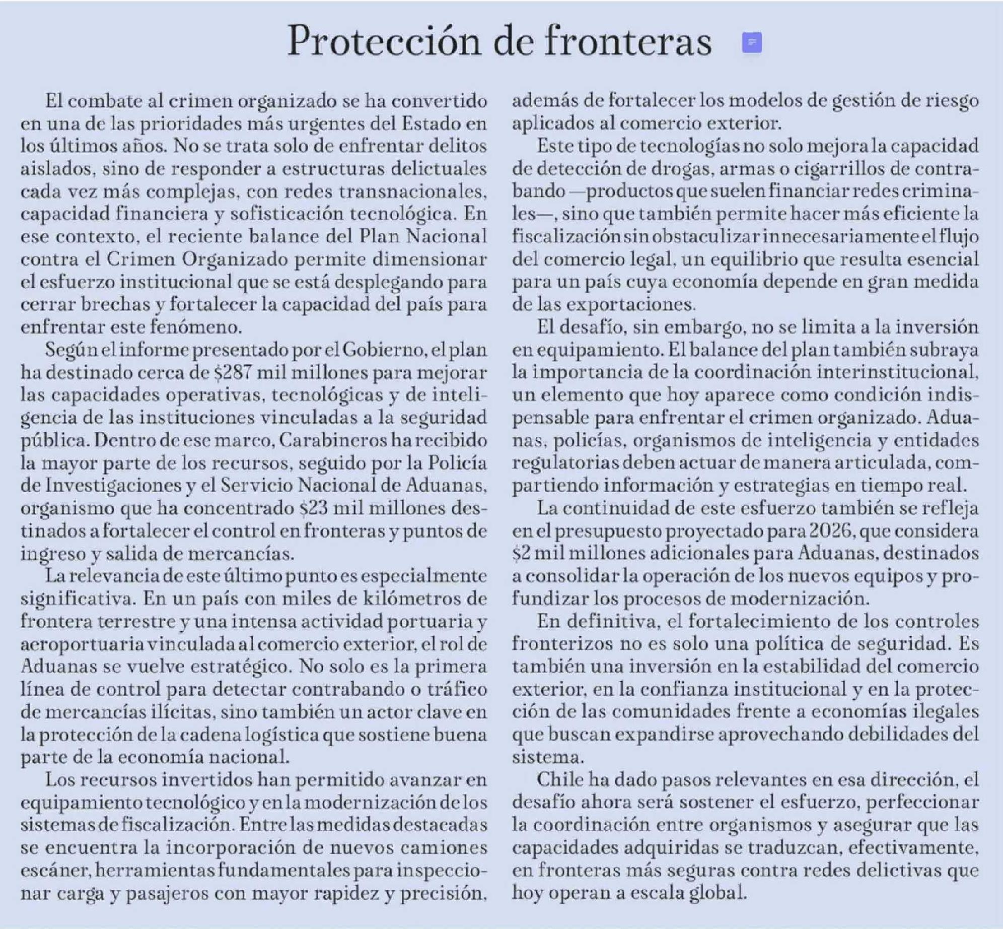 Editorial: Protección de fronteras