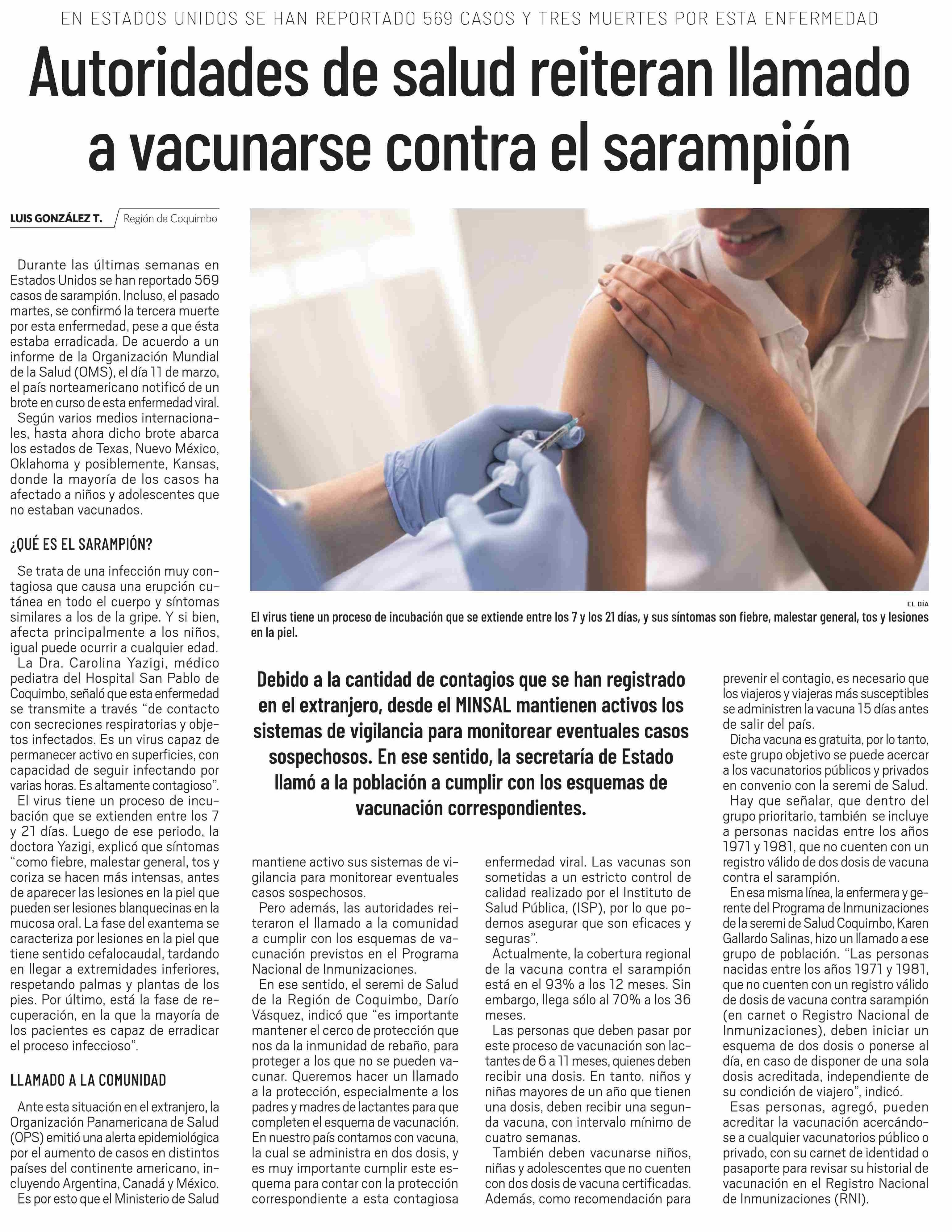 Autoridades de salud reiteran llamado a vacunarse contra el sarampión