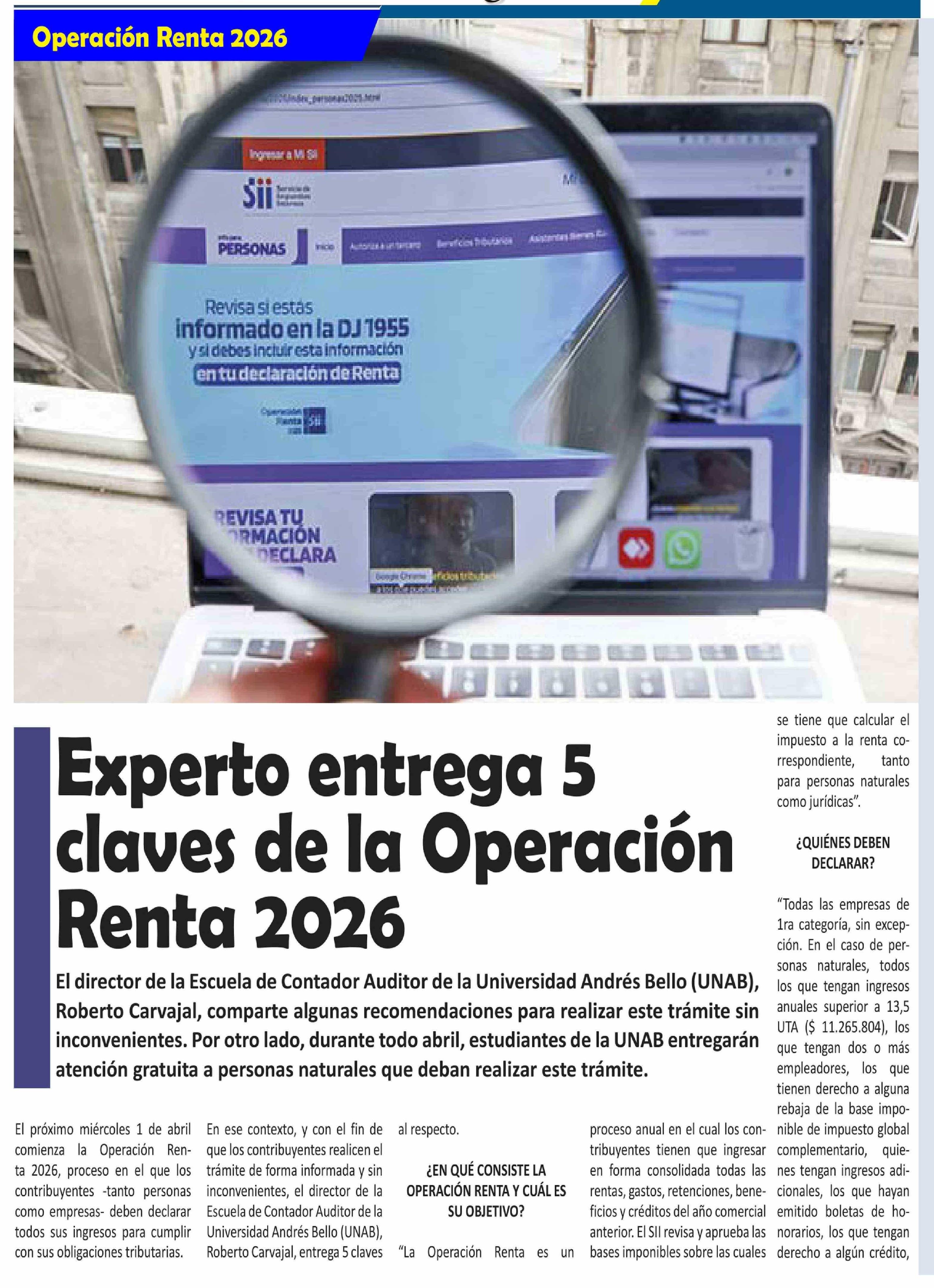 Experto entrega 5 claves de la Operación Renta 2026