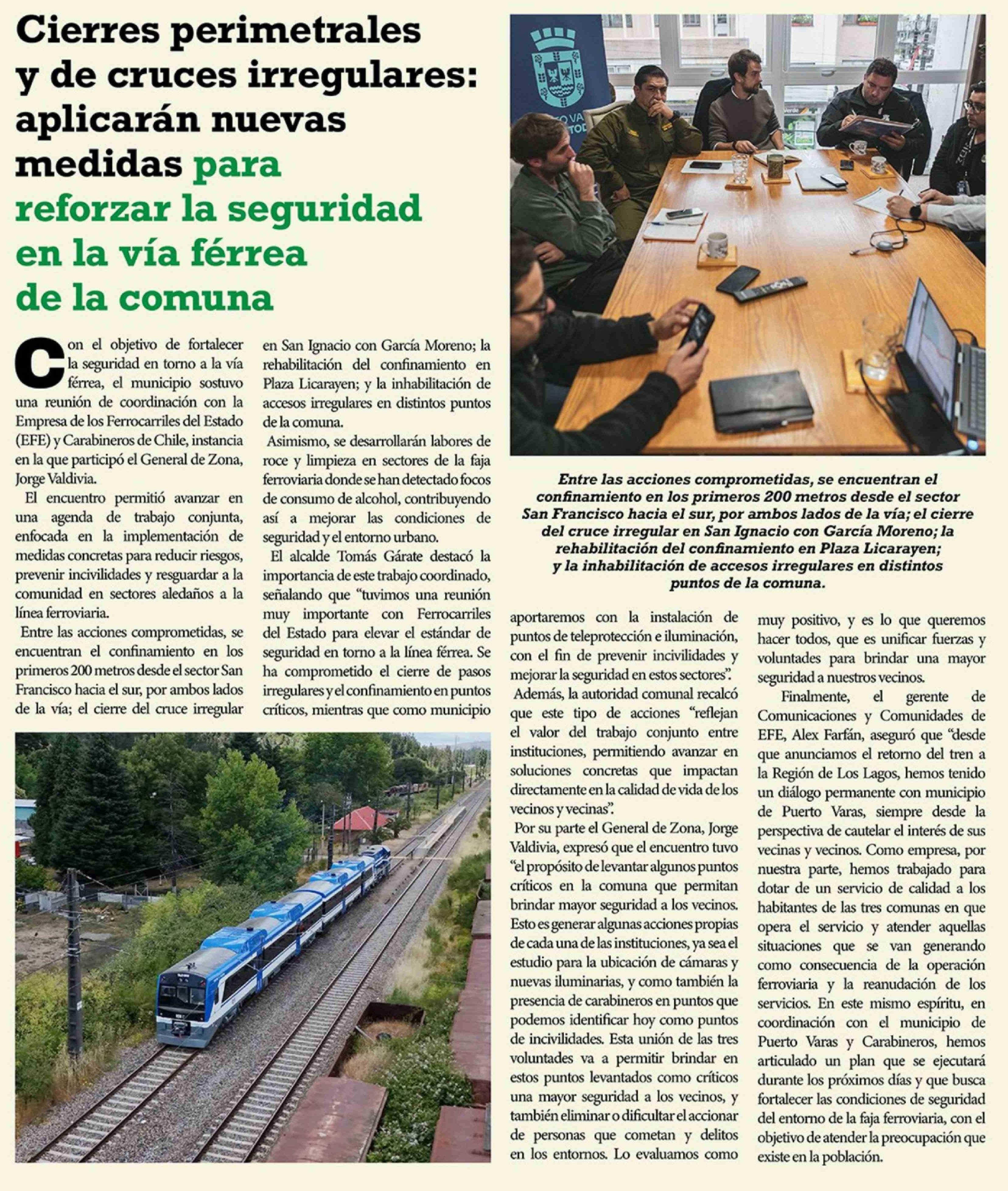 Cierres perimetrales y de cruces irregulares: aplicarán nuevas medidas para reforzar la seguridad en la vía férrea de la comuna