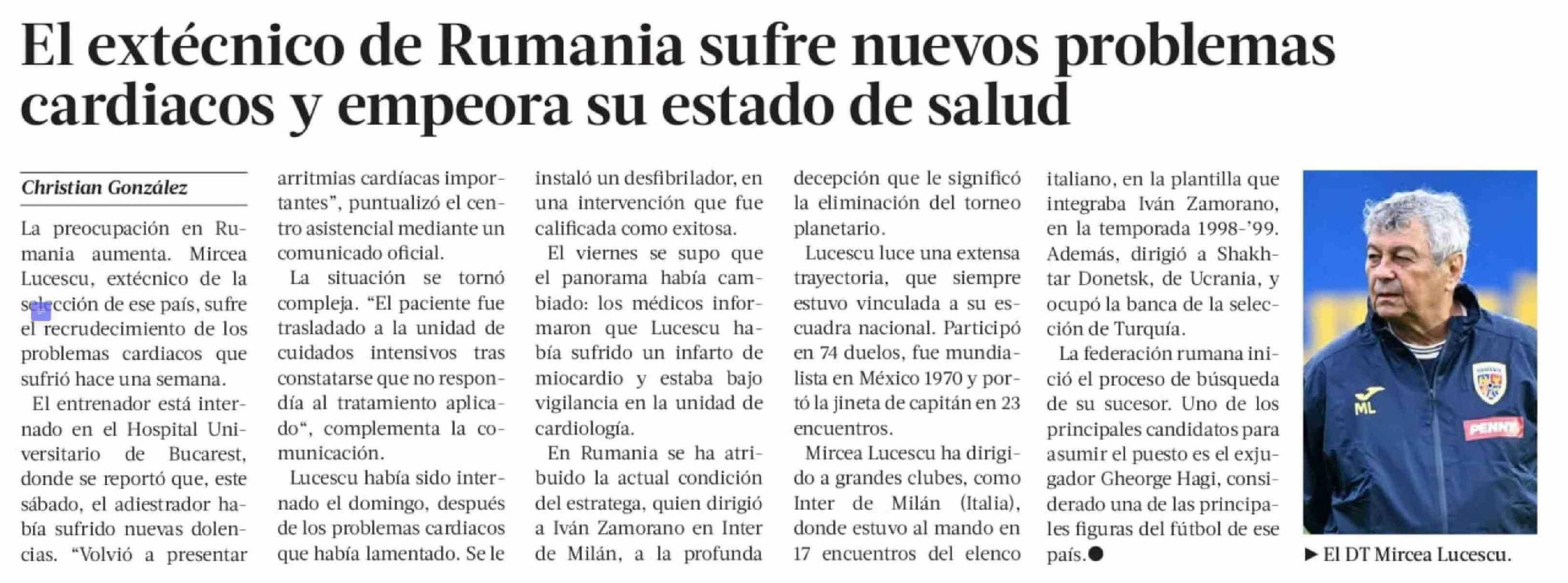 El extécnico de Rumania sufre nuevos problemas cardiacos y empeora su estado de salud