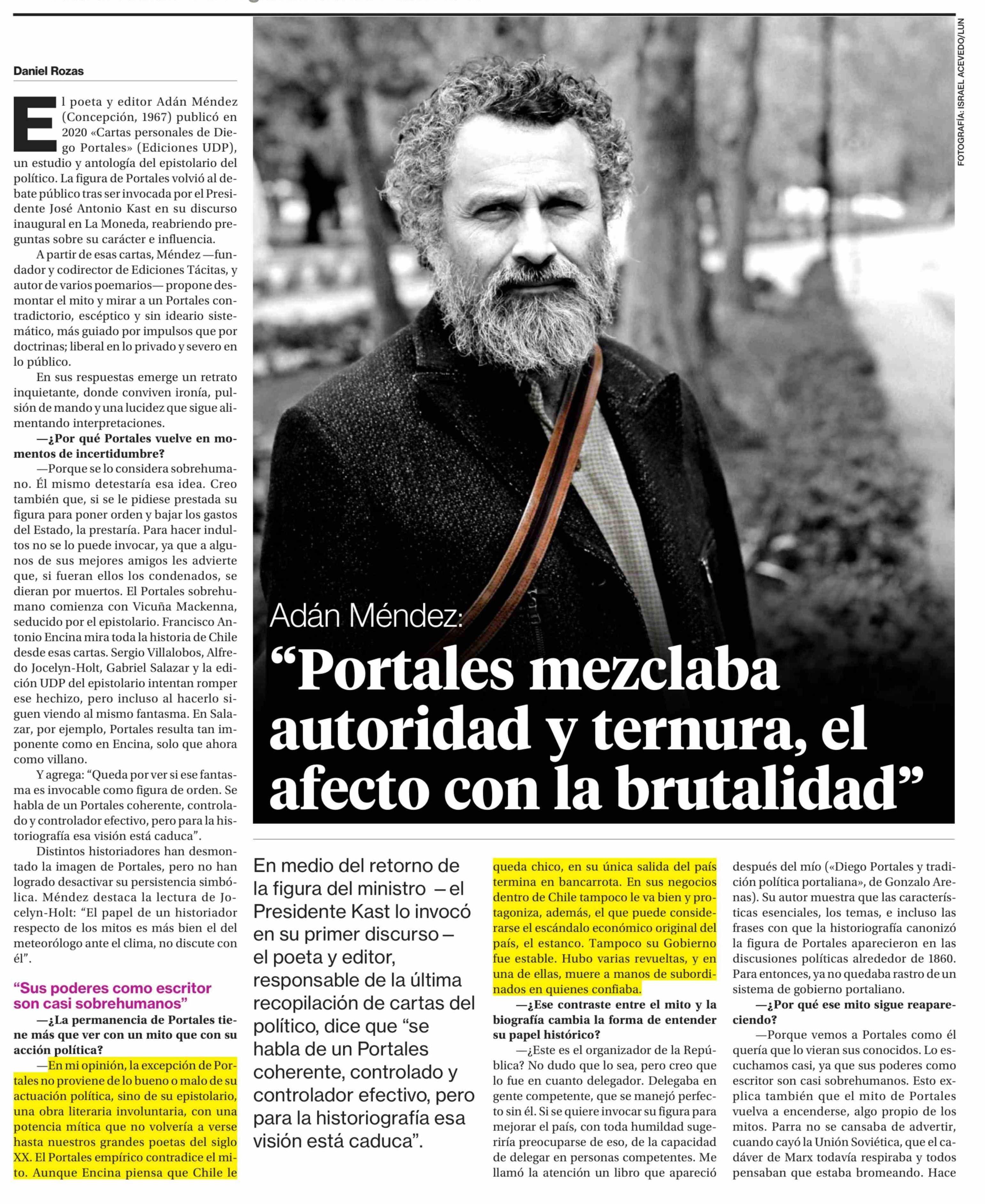 Título: Adán Méndez: "Portales mezclaba autoridad y ternura, el afecto con la brutalidad"