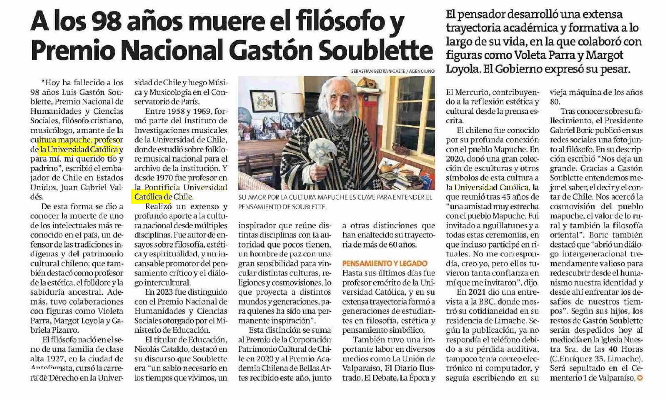 A los 98 años muere el filósofo y Premio Nacional Gastón Soublette